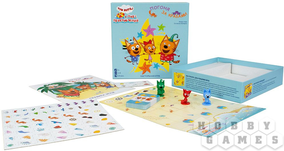 «Три кота и море приключений: Погоня за крабами» — это настольная игра, в которой всё усатое и хвостатое семейство отправляется в долгожданный отдых к тёплому морю. А самое любимое место любого ребёнка на отдыхе — это пляж, а потому и котята тут же облюбовали песчаный берег. Они веселятся, плавая в море и собирая разнообразные ракушки. Вот только собранная коллекция очень понравилась местным крабам. Поэтому котятам пришлось броситься на спасение своих сокровищ. |