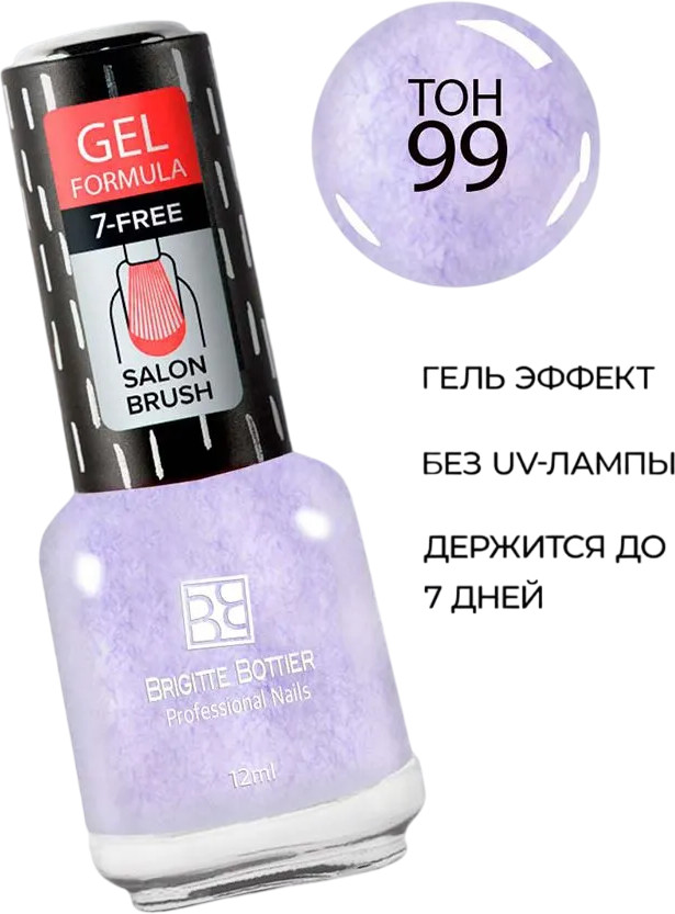 Brigitte Bottier Лак для ногтей с эффектом мелланж «Gel formula», оттенок 99 Сиреневый