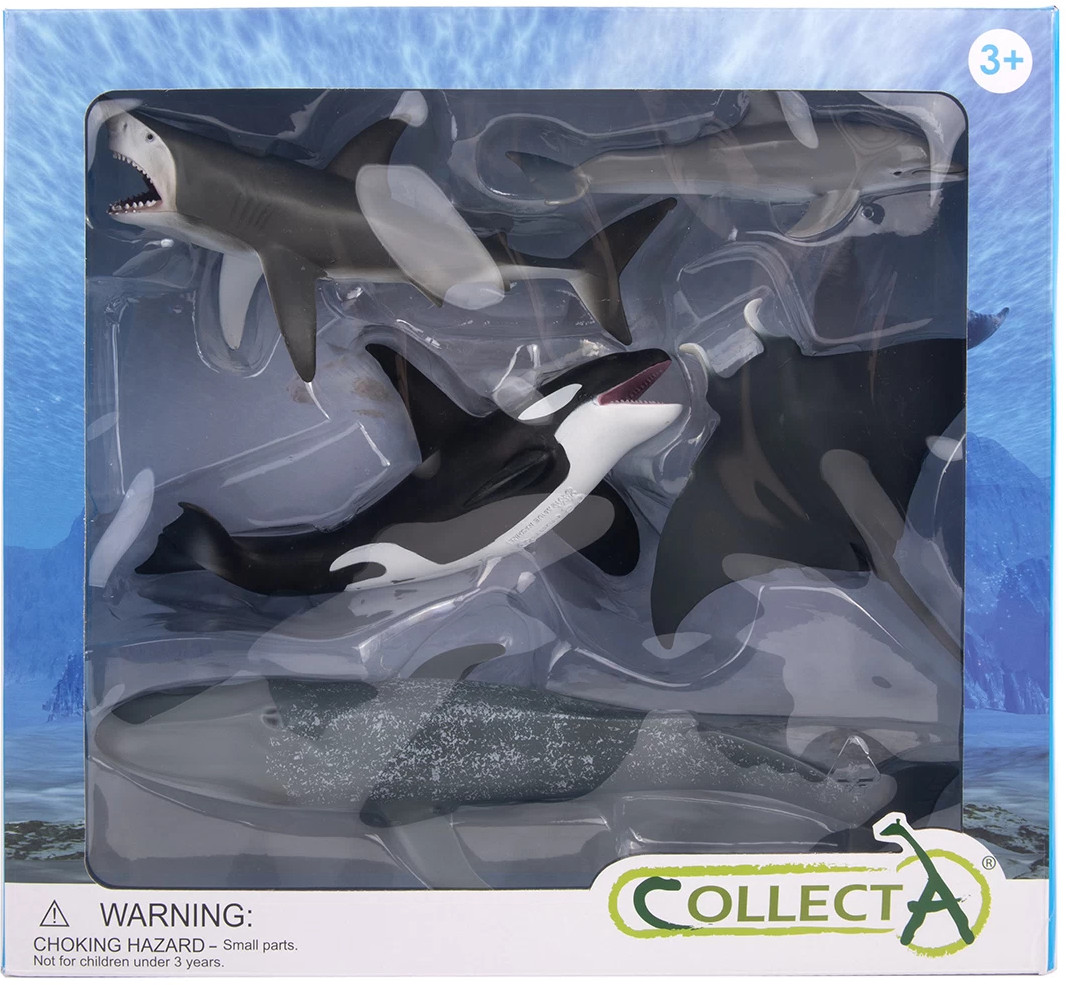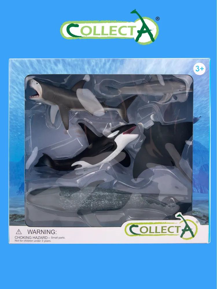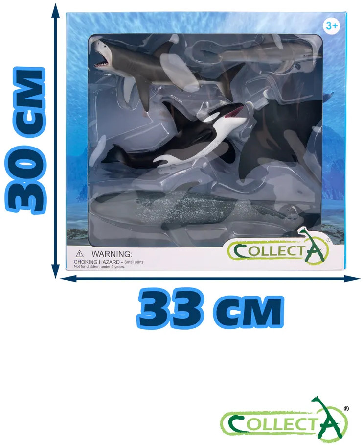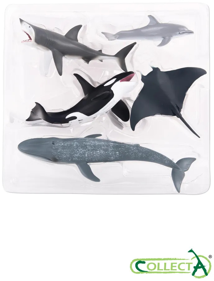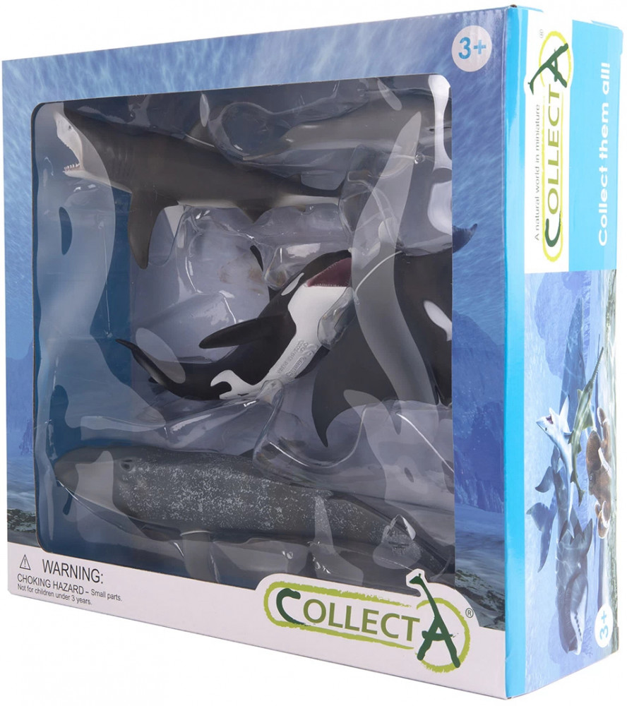 Набор морских обитателей в подарочной упаковке. В набор входит пять детализированных игрушечных копий животных, обитателей морей и океанов: синий кит (XL), скат (М), дельфин (М), белая акула (XL), касатка (XL). Игровые фигурки животных «Коллекта» являются точной копией животных. В создании этих игрушек принимают участие известные скульпторы. Благодаря качественным сертифицированным материалам их можно использовать как для активных детских игр ребёнка, так и для коллекционирования. Данная игрушка развивает внимание, логическое и образное мышление, фантазию малыша, а также знакомит ребенка с разнообразным миром животных в процессе игры. Для детей от 3 лет. |