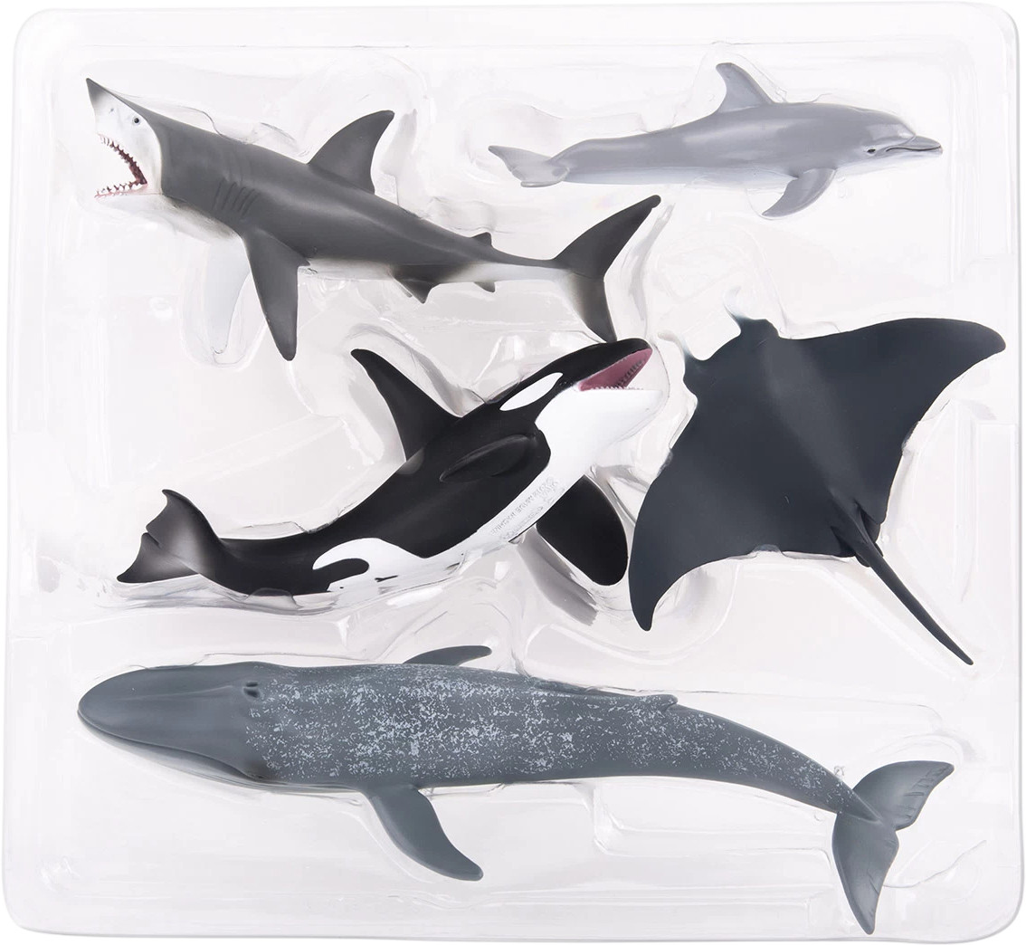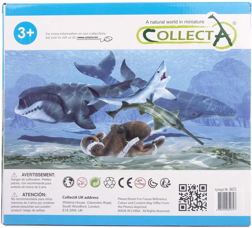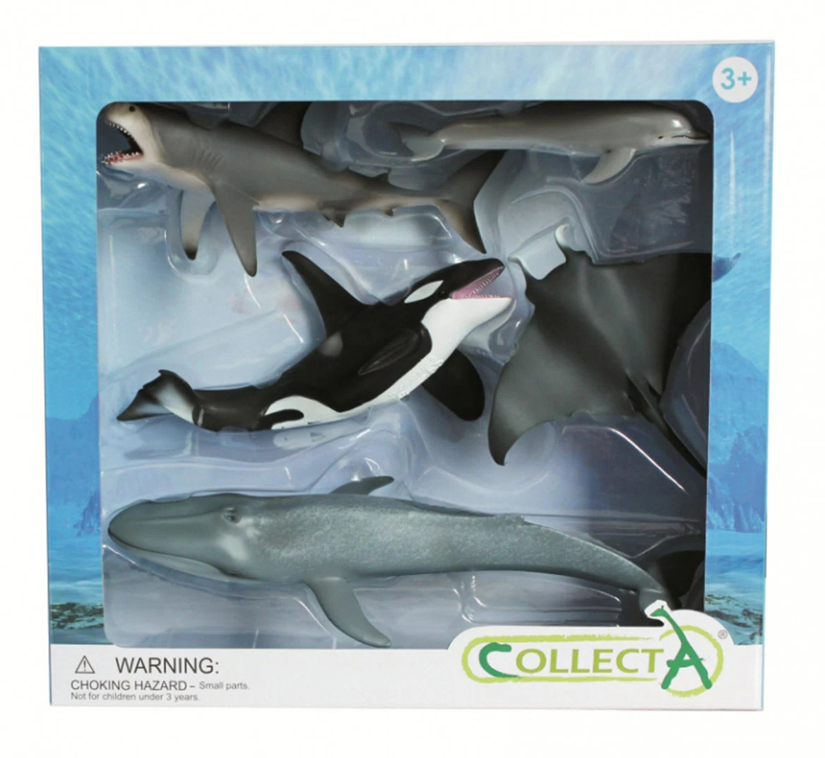 Набор морских обитателей в подарочной упаковке. В набор входит пять детализированных игрушечных копий животных, обитателей морей и океанов: синий кит (XL), скат (М), дельфин (М), белая акула (XL), касатка (XL). Игровые фигурки животных «Коллекта» являются точной копией животных. В создании этих игрушек принимают участие известные скульпторы. Благодаря качественным сертифицированным материалам их можно использовать как для активных детских игр ребёнка, так и для коллекционирования. Данная игрушка развивает внимание, логическое и образное мышление, фантазию малыша, а также знакомит ребенка с разнообразным миром животных в процессе игры. Для детей от 3 лет. |
