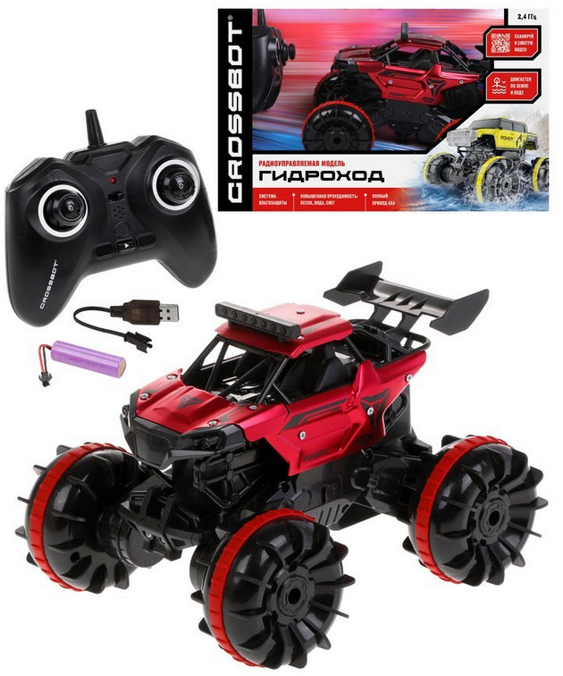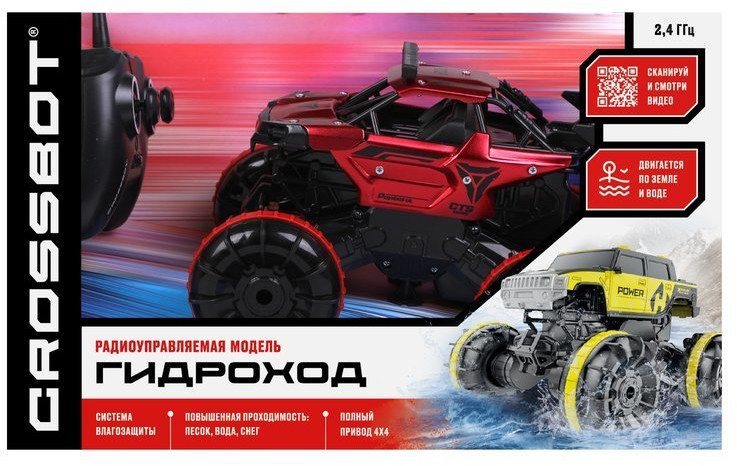 Crossbot Машина на радиоуправлении «Гидроход»новинка В данный момент этот товар отсутствует в продаже. Возможно, у нас найдется аналогичный или похожий товар здесь. Машина на радиоуправлении «Гидроход» способна двигаться по земле и воде. Отличается повышенной проходимостью по песку, воде и снегу. Обладает водонепроницаемым корпусом и специальными колесами с лопастями. Батарейки для пульта: 2 типа AA (не входят в комплект). Время работы — 20 минут. Время зарядки — 30 минут. |