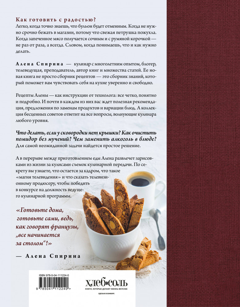 Серия: Кулинарные книги Алены Спириной Простая, понятная, щедрая на рецепты — новая книга Алены Спириной как приглашение на кухню, где пахнет пирогами и ароматным супом. Это более 150 блюд для всей семьи: от сезонных салатов и наваристых супов до домашней выпечки, десертов и уютных напитков. Каждое блюдо — это личный выбор автора, что она готовила десятки раз и советует от чистого сердца. Книга подойдет и начинающим, и тем, кто давно на «ты» с кастрюлями: рецепты подробно описаны, сопровождаются фотографиями и дополнены маленькими хитростями, которые делают готовку проще и радостнее. Эта книга — не просто про рецепты. Она про жизнь. Про радость готовить дома. Про то, как понимать то, что делаешь. Подарите ее себе или тем, кого любите — и готовьте с удовольствием. |