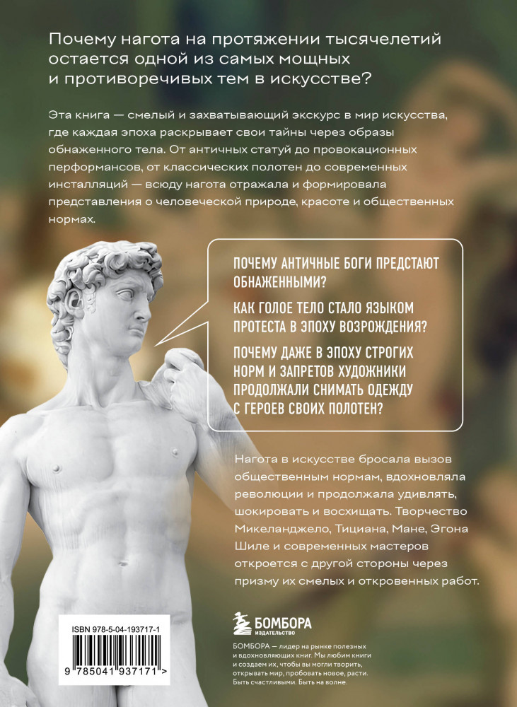 Серия: Подарочные издания. Искусство «Почему они все голые?» — такой вопрос невольно возникает в голове посетителя залов античного искусства или искусства Ренессанса, а порой огорошивает и зрителя искусства современного. Для каждой эпохи ответ будет своим, и их собрала в своей книге искусствовед Юлия Павлоцкая. |