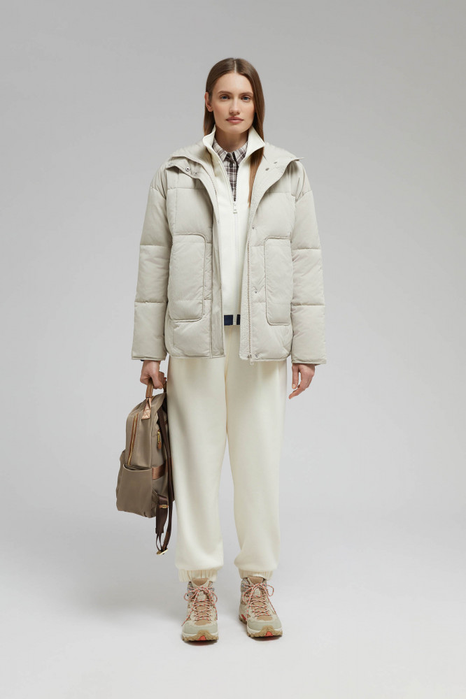 Легкий и прочный подклад обработан антибактериальной пропиткой, которая предотвращает развитие микрофлоры и продлевает срок службы изделия. От намокания и ветра защищает полиуретановое покрытие, нанесенное с внутренней стороны материала. Свободный крой с регулируемым изнутри поясом отвечает за удобную посадку модели. Высокий воротник-стойка защищает шею от ветра. Предусмотрены декоративные накладные карманы. Куртка застегивается на центральную молнию и планку с кнопками.