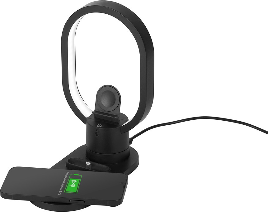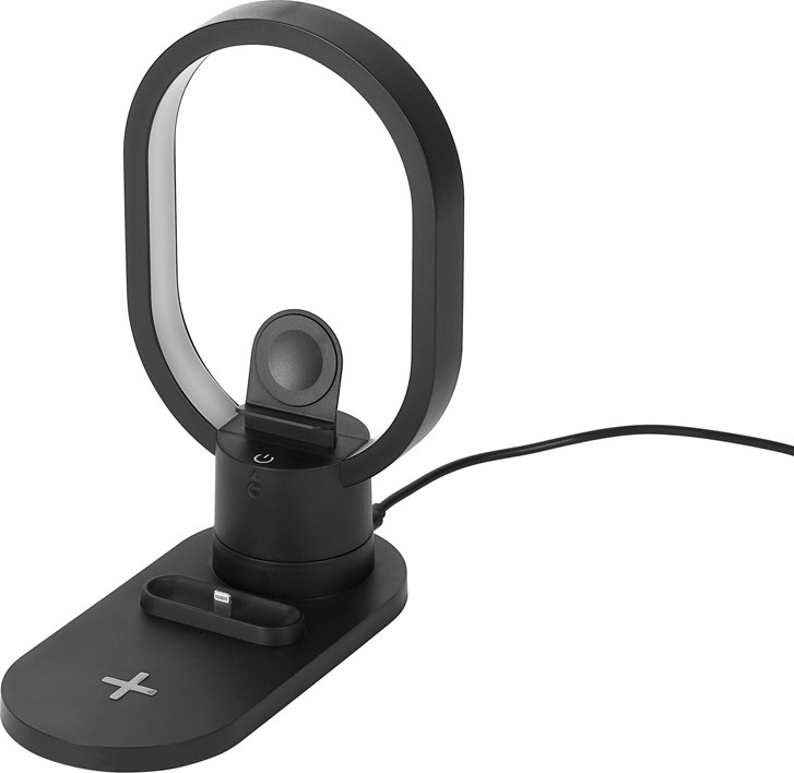 Настольная зарядная станция с лампой для трёх устройств — смартфона с поддержкой беспроводной зарядки, часов Apple и наушников Apple (разъем Lightning). Регулируемый уровень яркости (диммер). Лампу можно вращать вокруг своей оси. Для удобства транспортировки лампу можно отсоединить. Быстрая беспроводная зарядка 15 Вт. Одновременная зарядка 3 устройств. Регулируемая яркость лампы. Многоуровневая интеллектуальная система защиты для безопасной зарядки |