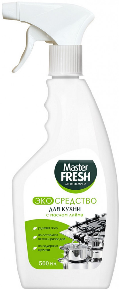 Сделайте ежедневную уборку более приятной и безопасной: выберите MASTER FRESH Экоспрей для кухни с экстрактом масла лайма.