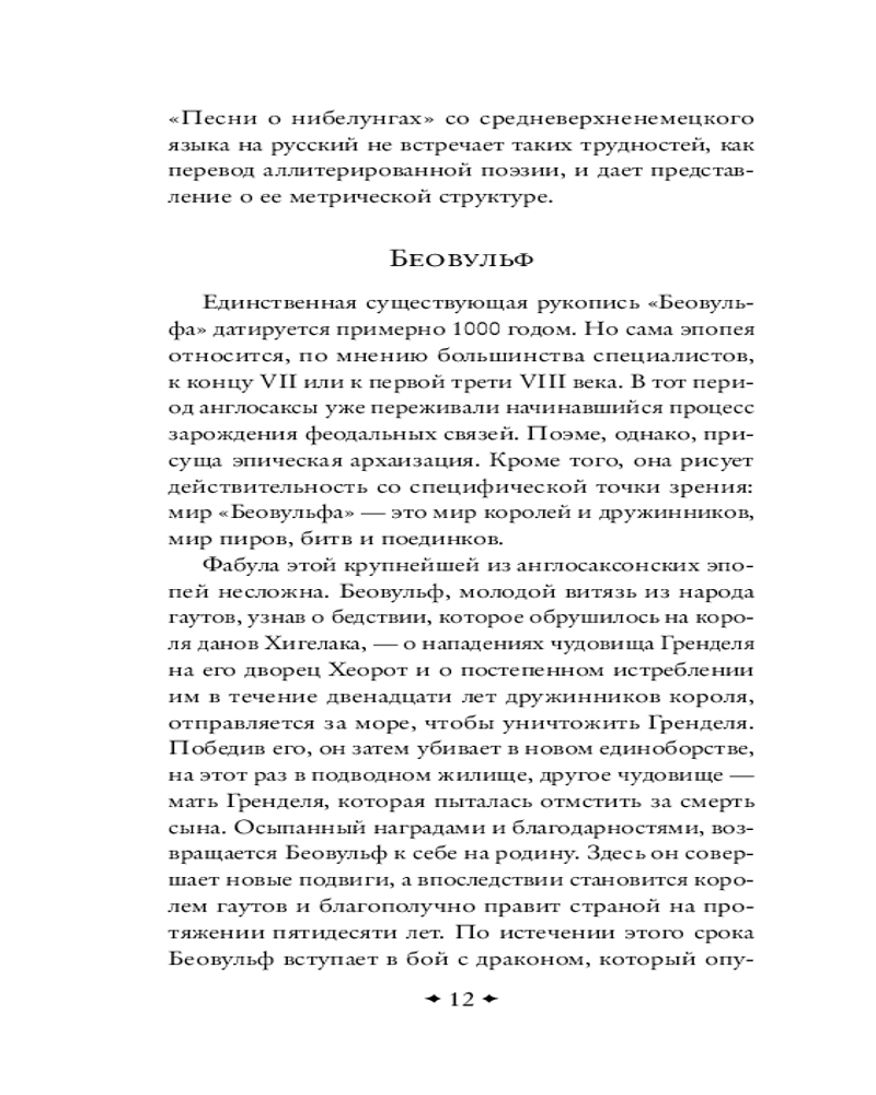 Серия: Всемирная литература (новое оформление) Шедевр средневековой литературы, заложивший основы европейского героического эпоса. В основе поэмы — сказания о подвигах Беовульфа, гаутского витязя, пришедшего на помощь датскому королю Хродгару, чей пиршественный зал Хеорот терроризирует чудовище Грендель. Победив его и его мать — древнюю тварь из подводного мира, — Беовульф обретает славу, но спустя годы, уже будучи королём, вынужден вступить в последний бой — с драконом, стерегущим роковой клад. |