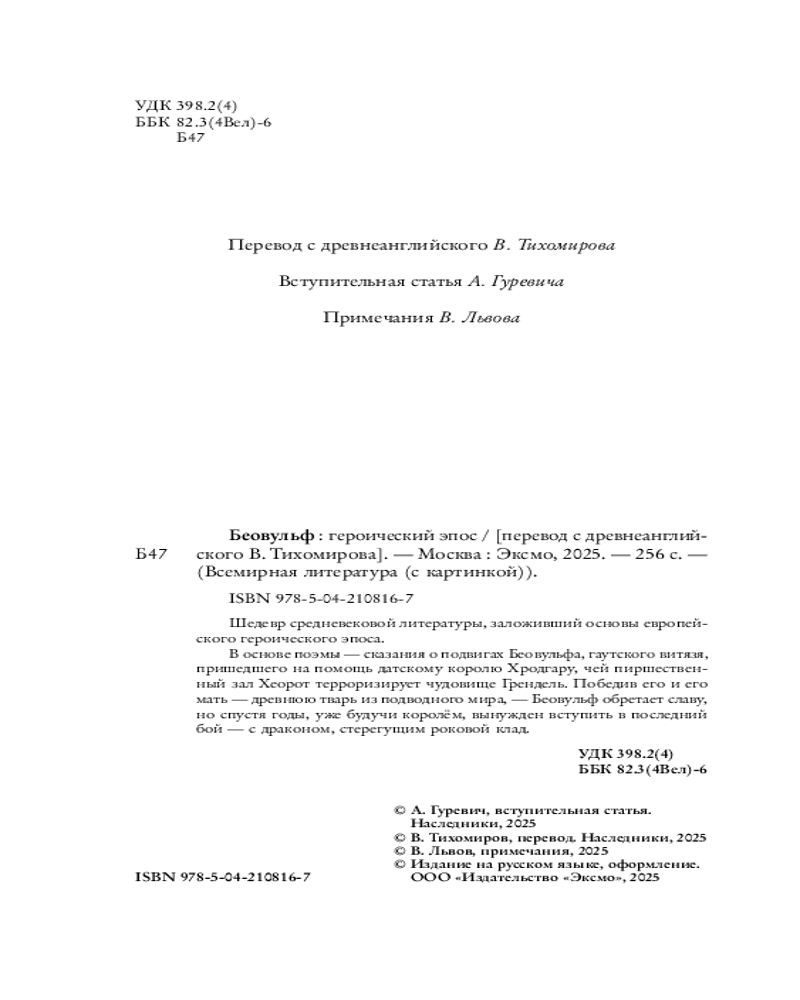 Беовульф. Героический эпосновинка -20%