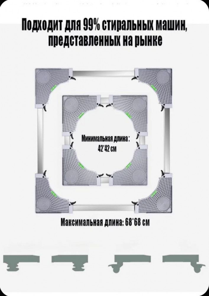 💳 Оплатить за товар можно при получении 🇰🇿 Есть бесплатная доставка по Казахстану от 1 дня 🎁 Копите бонусы с каждой покупки Подставка для мебели и стиральной машины — регулируемая, прочная. Универсальная подставка предназначена для стиральных машин, холодильников, шкафов, тумбочек и другой крупной бытовой техники. Подходит для большинства моделей и размеров. Изготовлена из прочного пластика и усиленных труб, выдерживает большие нагрузки и обеспечивает надёжную устойчивость. |