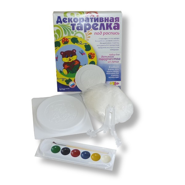 Комплектация: формы, гипс, краски, кисть, подставка для тарелки, инструкция на русском языке.