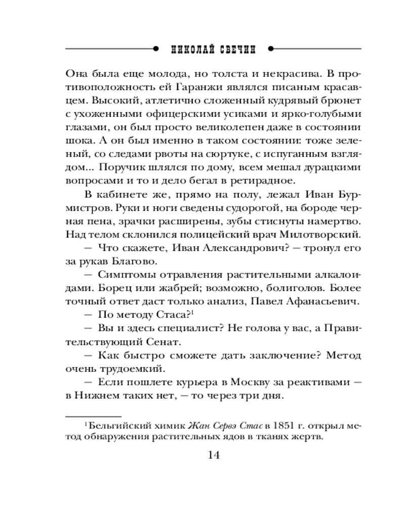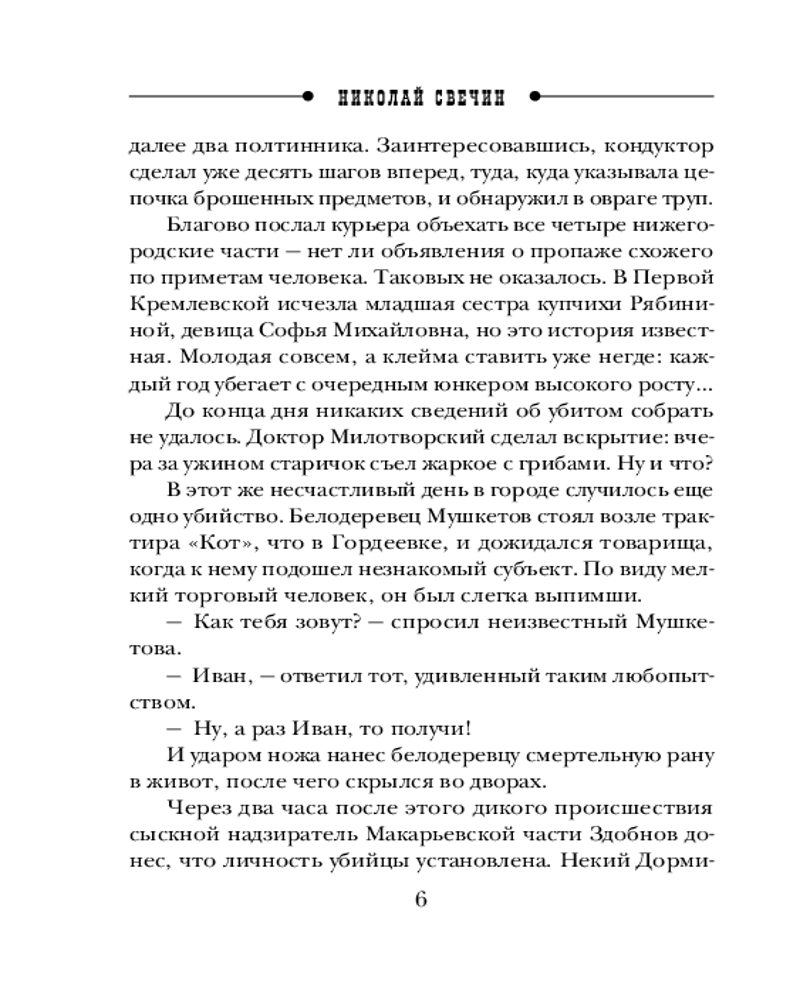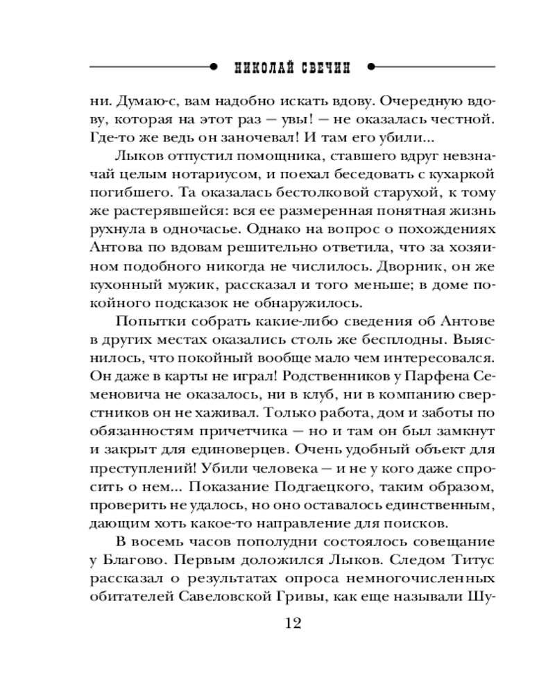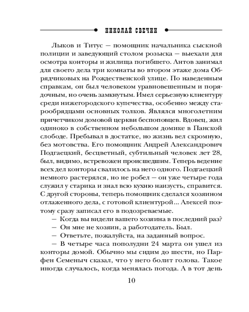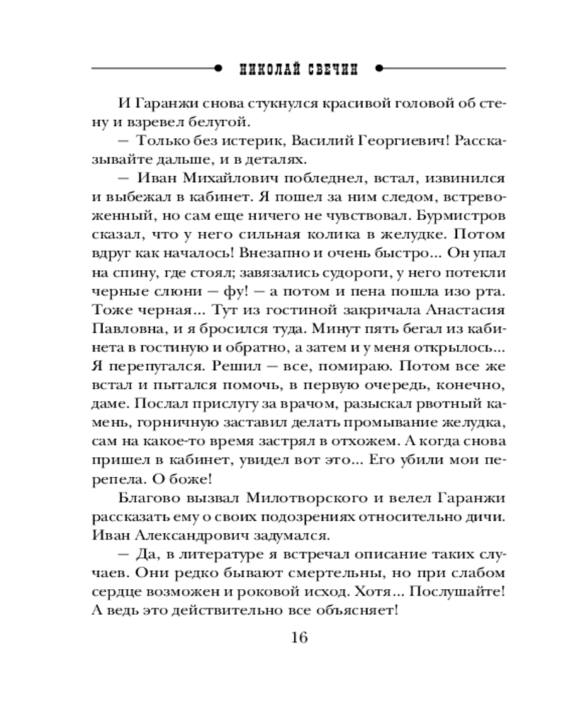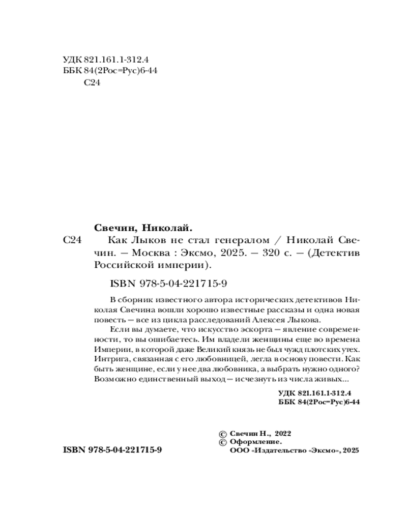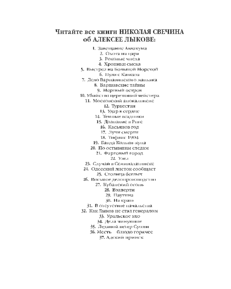 Серия: Детектив Российской империи (обложка) Стильная серия модного автора ретро-детективов Николая Свечина. Книга станет подарком для всех ценителей остросюжетного жанра! Николай Свечин — один из самых известных авторов исторических детективов, номинант премии «Русский детектив» и лидер в своей нише. Самая знаменитая серия Свечина — серия про расследования Алексея Лыкова. Она насчитывает уже более 20 романов и сборников, в каждом из которых — отдельная история преступлений, но узнаваемые герои. Эффект остросюжетного сериала. В сборник известного автора исторических детективов Николая Свечина вошли хорошо известные рассказы и одна новая повесть — всё из цикла расследований Алексея Лыкова. |