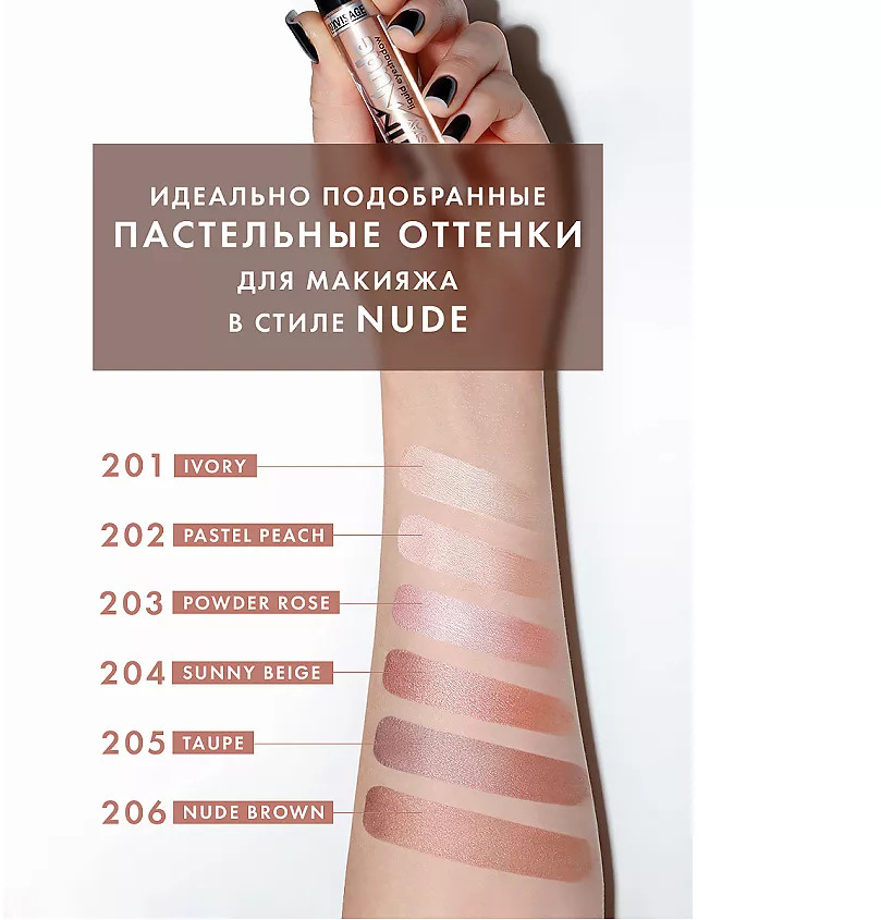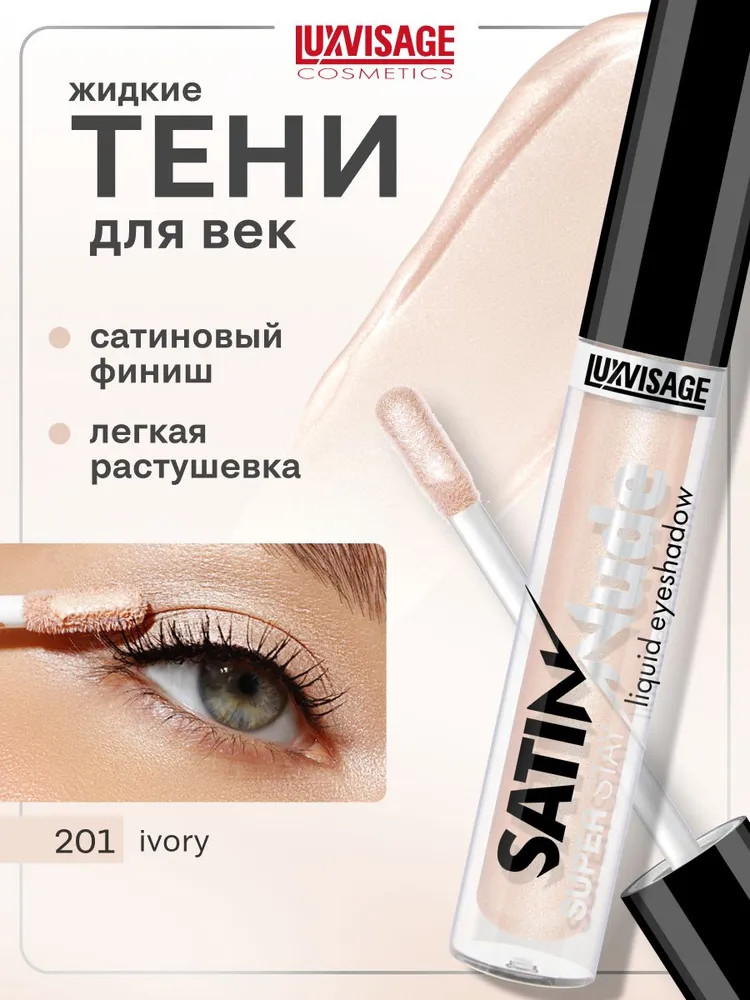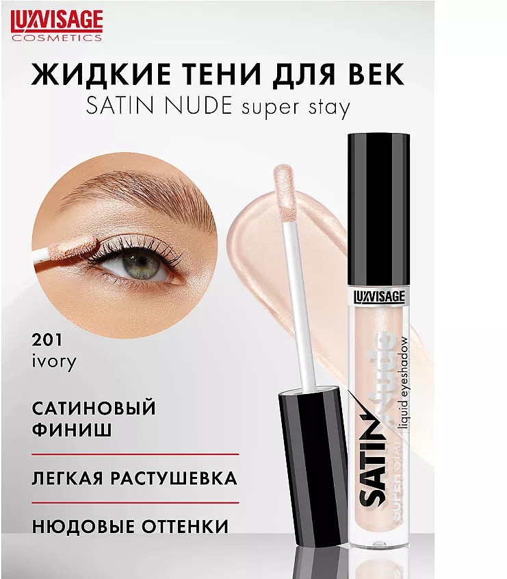 LuxVisage Жидкие тени для век «Satin Nude Super Stay Liquid Eyeshadow», оттенок 201 Ivory
