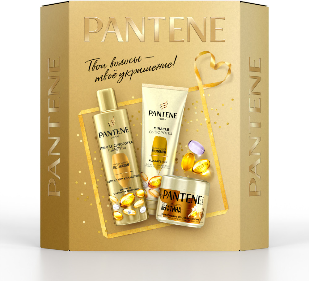 Шампунь: Aqua, Sodium Laureth Sulfate, Cocamidopropylу Betaine, Sodium Citrate, Sodium Xylenesulfonate, Sodium Lauryl Sulfate, Glycol Distearate, Sodium Chloride, Stearyl Alcohol, Parfum, Dimethiconol, Cetyl Alcohol, Sodium Benzoate, Dimethicone, Citric Acid, Sodium Salicylate, Guar Hydroxypropyltrimonium Chloride, TEA-Dodecylbenzenesulfonate, Sodium Hydroxide, Trideceth-10, Tetrasodium EDTA, Panthenol, Panthenyl Ethyl Ether, Hexyl Cinnamal, Histidine, Glycerin, Propylene Glycol, PEG-100 Stearate, Benzyl Alcohol, Sodium Hyaluronate, Rubus Idaeus Fruit Extract, Ricinus Communis Seed Oil, Hydrolyzed Silk, Phenoxyethanol, Triethylene Glycol, Palmitoyl Pentapeptide-4.