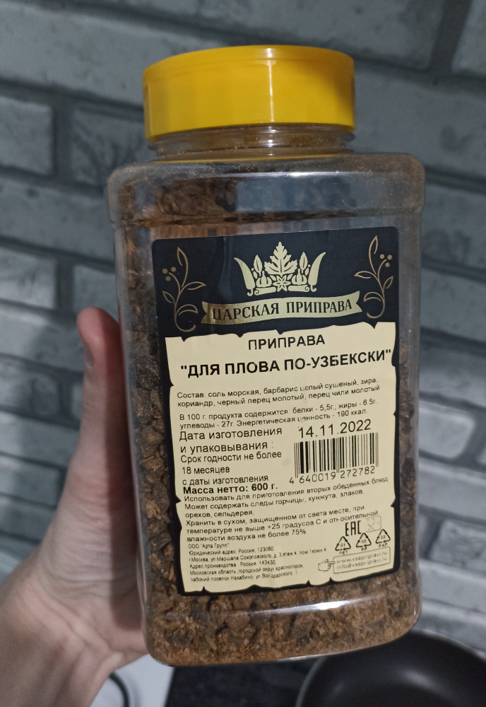 Приправа не понравилась, ничего от узбекского плова, кроме зиры и барбариса.
