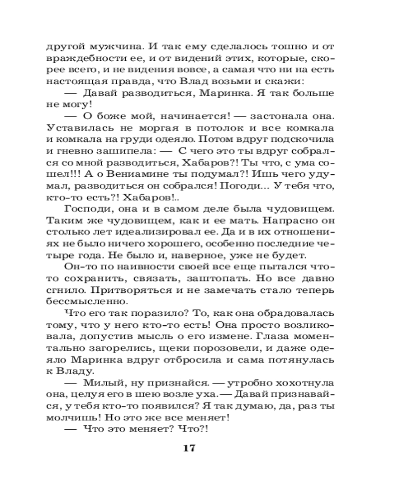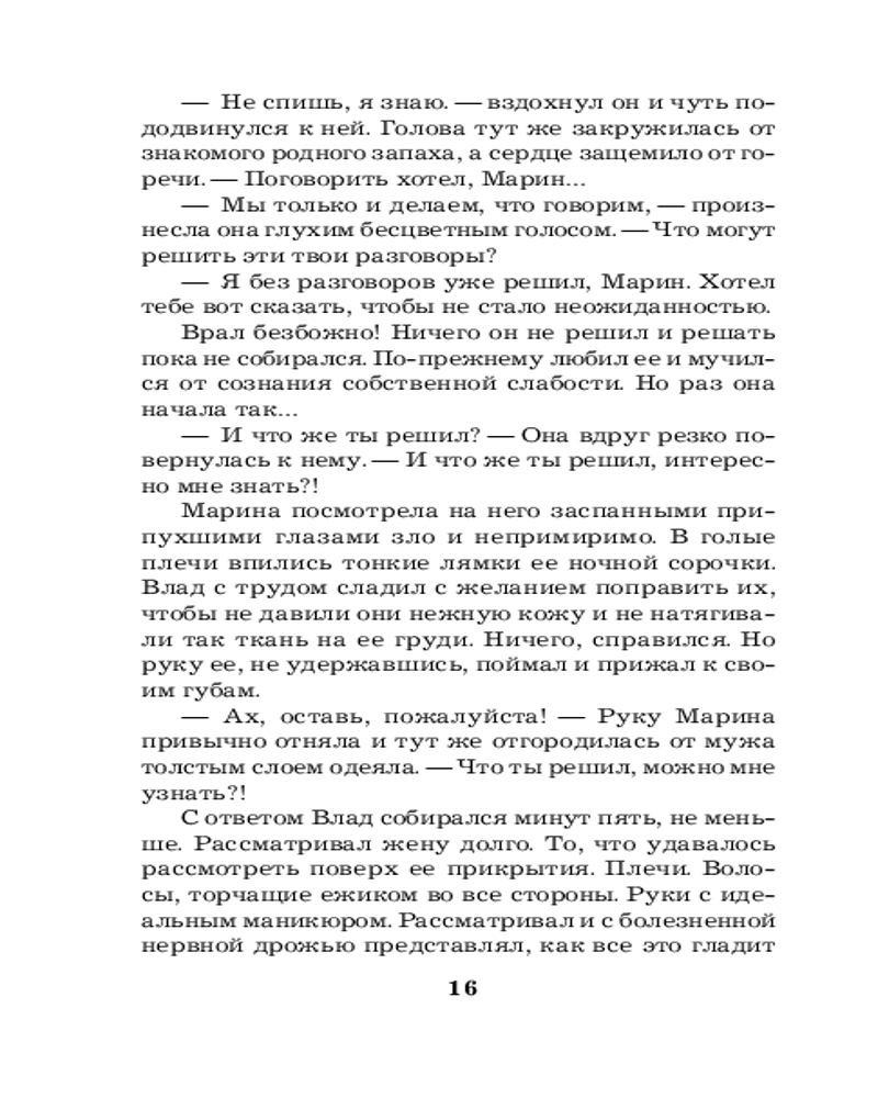 Серия: Детективы Галины Романовой. Метод Женщины. Новое оформление (обложка) Любовь с первого взгляда — возможно ли такое в наше время? Оказывается, да! Встретив Влада Хабарова, юная Олеся поняла: вот он, ее родной и единственный. Только Хабаров испугался чувств бесшабашной девчонки, которая ни с того ни с сего подошла к нему и пригласила к себе домой. Да и не до любви ему было — все мысли о разводе с изменщицей-женой... Пока Влад думал, кто-то убил его неверную супругу. Конечно же, все улики против него. И никто не верит в его невиновность, кроме Олеси. Но кого убедят доводы влюбленной девушки?.. |