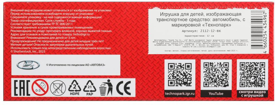 Технопарк Машина инерционная «ВАЗ-2112»новинка -35%