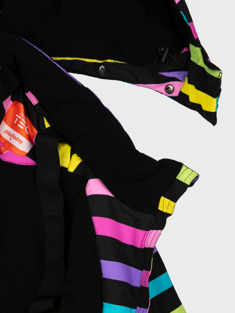 Комплект для девочек PlayToday создан для активных прогулок и защиты в любую погоду. Куртка и брюки выполнены из прочного текстиля с современным полиуретановым покрытием, которое надежно отталкивает влагу и защищает от ветра, сохраняя при этом легкость и комфорт в движении. Удобный крой и продуманные детали обеспечивают свободу активности и надежную посадку, а стильный дизайн делает образ ярким и современным. Этот комплект станет идеальным выбором для повседневных прогулок, игр и приключений на свежем воздухе.