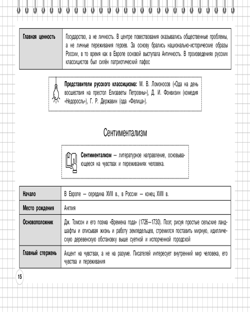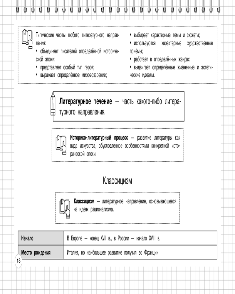 Серия: Школьный курс в наглядных таблицах Наглядные таблицы — это самый эффективный способ подачи информации для быстрого усвоения материала в условиях дефицита времени! Благодаря альбомной ориентации работать с таблицами будет ещё удобнее. В пособии представлены основные разделы школьного курса литературы за 5, 6, 7, 8, 9, 10, 11 классы, начиная с древнерусской литературы и заканчивая литературой XX века. Школьники найдут много полезного для своего образования и качественной подготовки к экзаменам, потому что в книге: |