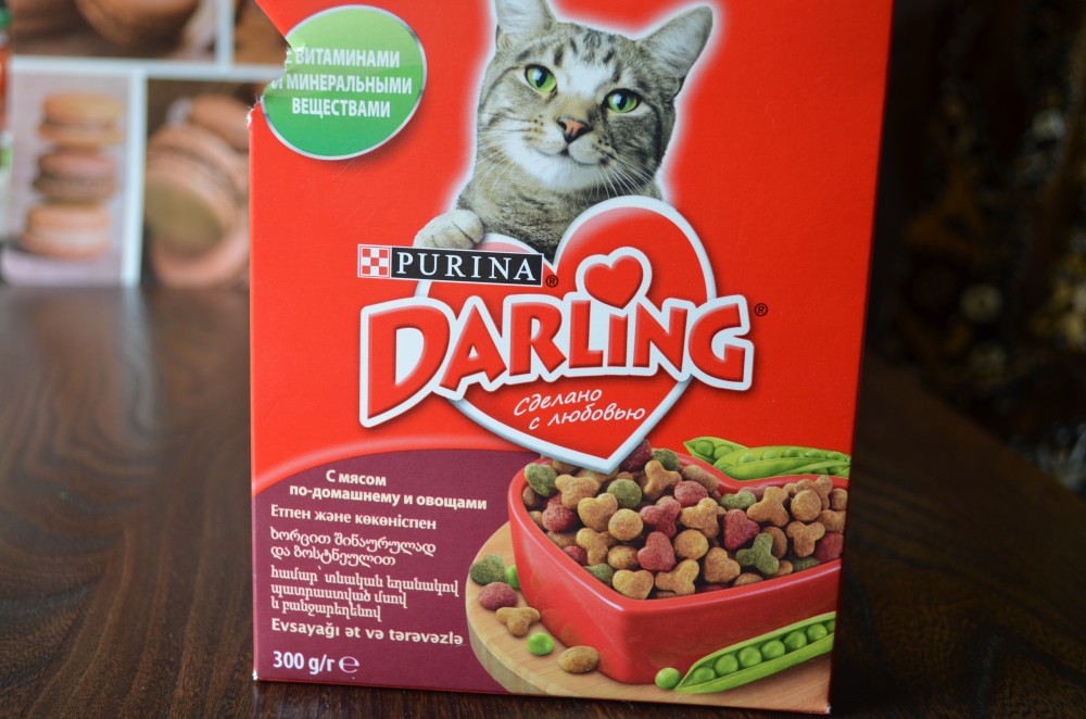 Корм взяла впервые из серии Darling. На вид вроде приличный и запаха резкого нет, но почему то мои кошки его едят не очень хорошо.