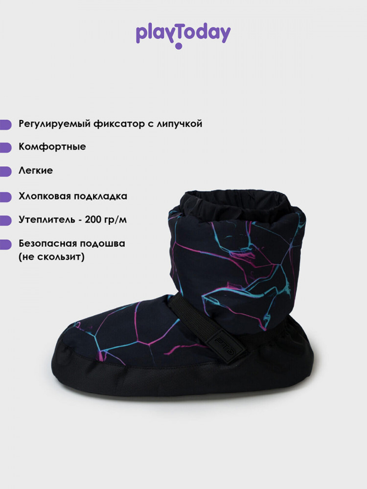 Классические разогревающие сапожки для танцев и гимнастики для девочки подростка от PlayToday — тёплые, удобные и практичные чуни для юных артисток и спортсменок. Они сохраняют мышцы ног в тепле между тренировками, выступлениями и репетициями, предотвращая переохлаждение и помогая поддерживать рабочий тонус. Эти утепленные подростковые сапожки чуни для девочек можно надевать на балетки, пуанты, носки или босую ногу — они легко садятся и не сковывают движений. Внутренняя подкладка позволяет быстро переобуться прямо в зале, а мягкий утеплитель удерживает тепло без утяжеления стопы. Такая модель особенно актуальна во время ожидания между выходами во время соревнований. Подошва с антискользящим эффектом помогает безопасно передвигаться по гладким поверхностям, а эластичная стропа с липучкой надёжно фиксирует такие универсальные детские сапожки для школьницы на стопе. Утягивающая резинка в верхней части помогает сохранить тепло и защищает от сквозняков. Флисовая стелька делает обувь особенно приятной при носке на босую ногу. Эти стильные яркие сапожки для подростков легко складываются в спортивную сумку, практически не занимая места. Совет по стилю: сочетайте такие удобные спортивные чуни для тренировок с лосинами, трико или балетной формой от PlayToday — получится гармоничный образ, подходящий для зала, репетиций и соревнований. Уход за моделью не требует усилий: достаточно протирать сапожки влажной салфеткой или стирать вручную при температуре до 30 °C. Модные разогревающие сапожки чуни для девочки от PlayToday — это комфорт, тепло и забота о здоровье ног юной спортсменки. Отличный выбор для балета, гимнастики, танцев и других активностей в зале.