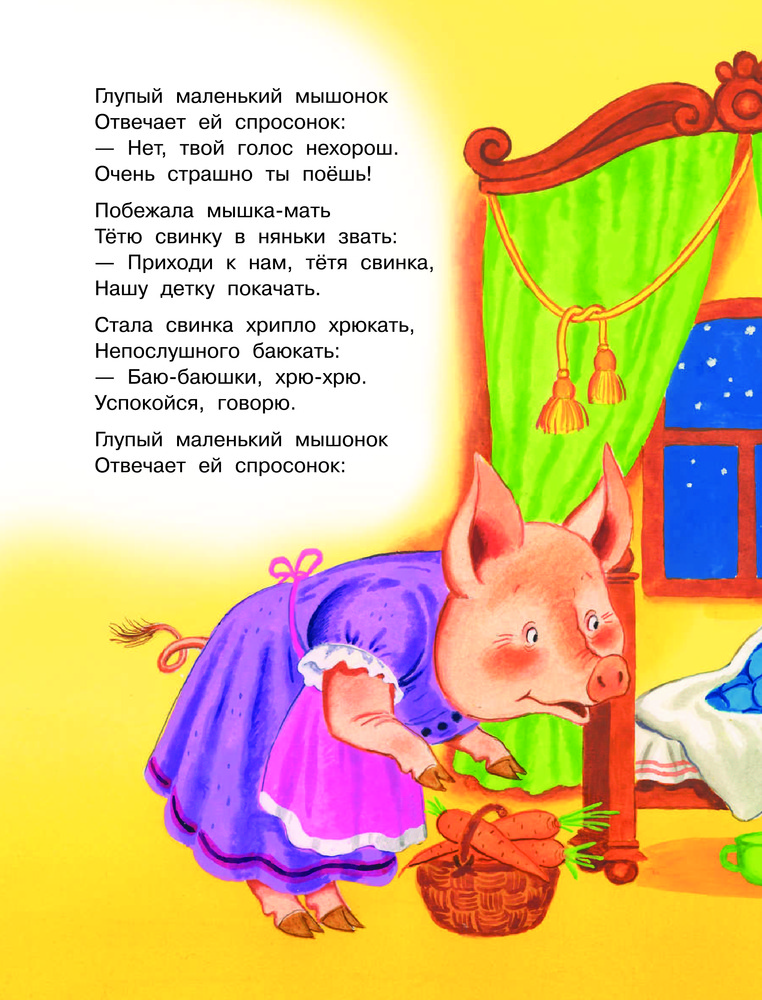 Содержание: Сказка о глупом мышонке; Сказка об умном мышонке; Тихая сказка; Курочка Ряба и десять утят; Усатый-полосатый; Кто колечко найдет?; Урок вежливости;Пудель. Отличный подарок, удачное приобретение! Картинки крупные, понятные, подходит для чтения малышам уже месяцев с 6-8.