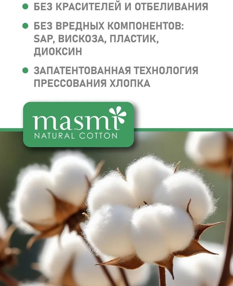 100% натуральные средства гигиены с заботой о женском здоровье и окружающем мире. Натуральные тампоны Masmi Super сделаны из 100% органического хлопка и разработаны специально для нормальных и обильных выделений.