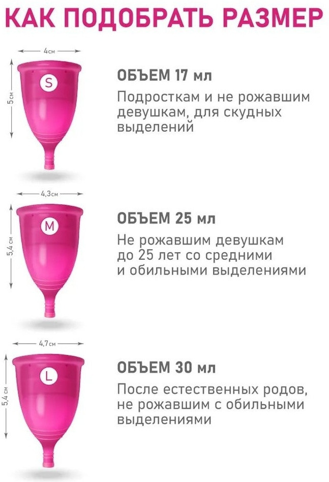 В данный момент этот товар отсутствует в продаже. Возможно, у нас найдется аналогичный или похожий товар здесь. Менструальная чаша — это натуральная, экономичная и экологичная альтернатива использованию других средств женской гигиены, таких как гигиенические прокладки или тампоны. Размер M подходит для женщин моложе 25 лет или женщин, не рожавших естественным путем. Ёмкость: 25 мл, диаметр: 43 мм, длина: 67 мм.