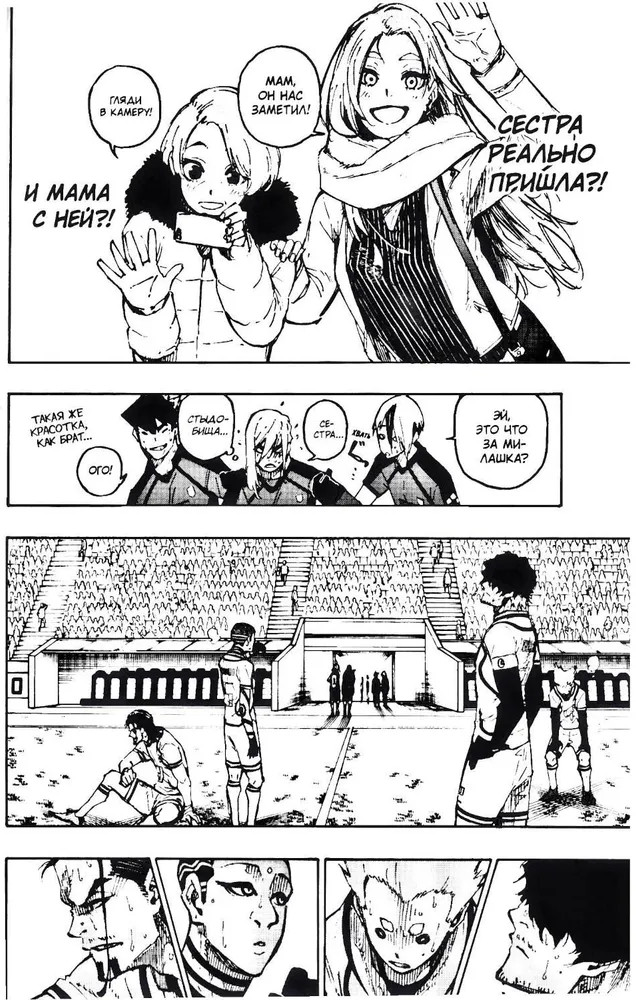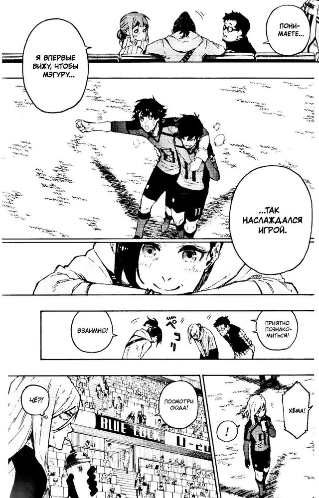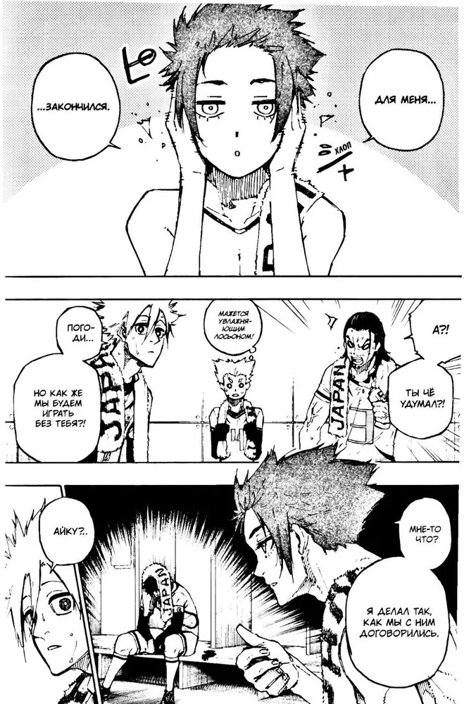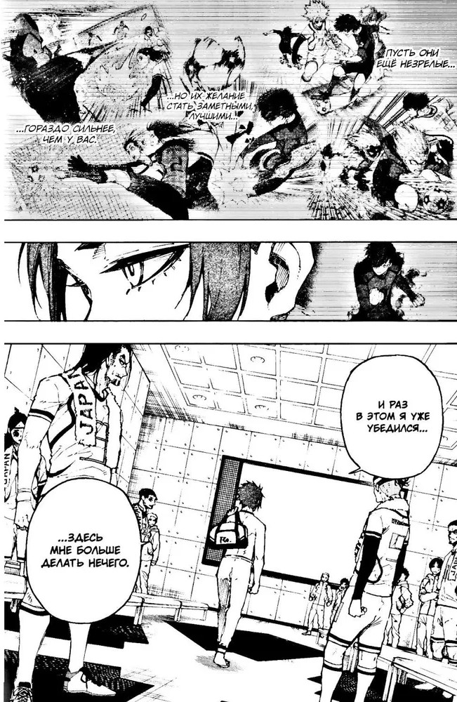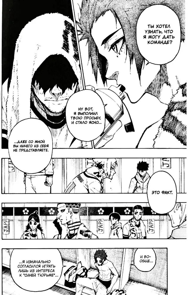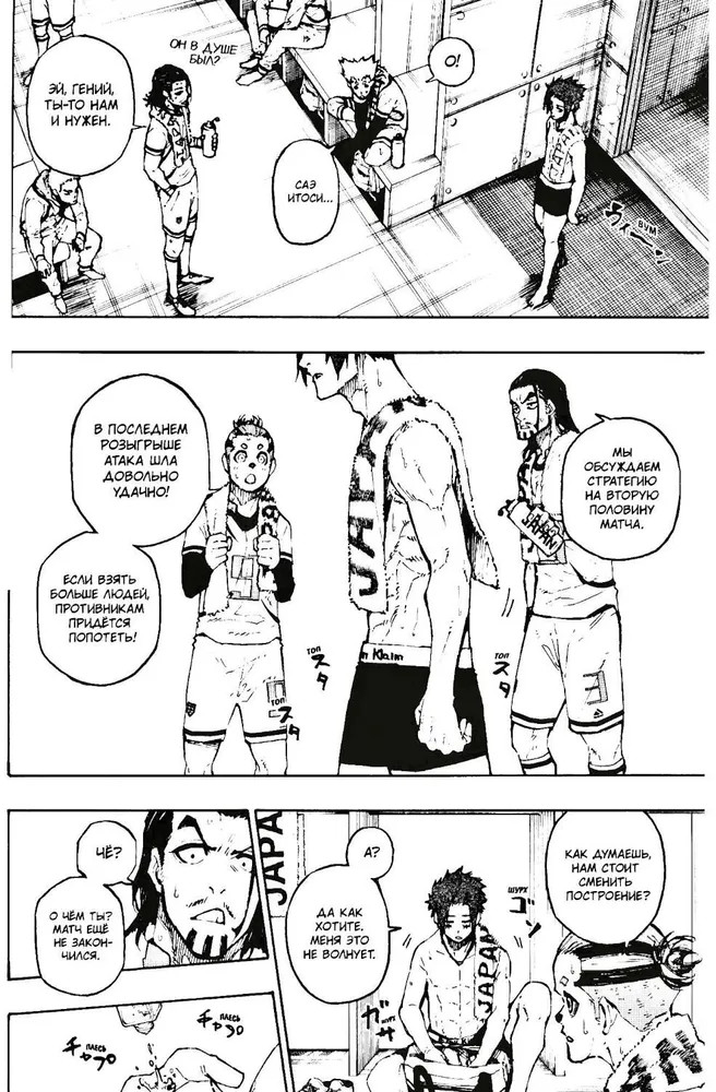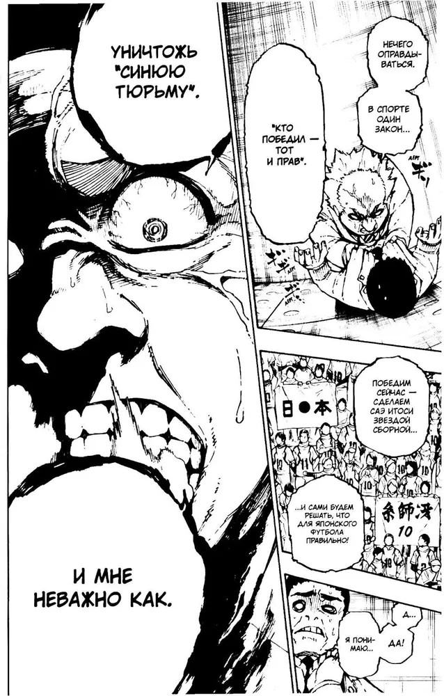 Вторая половина матча против сборной Японии — мяч в игре! На сцену выходит демон родом из «Синей тюрьмы»! Первая половина матча, от которого зависит продолжение проекта «Синяя тюрьма», закончилась феерическим голом Рина Итоси, выведшим его команду в лидеры! Но у сборной есть туз в рукаве — достойный противник даже для поразивших зрителей эгоистов! Взгляд Рюсэя Сидо, протеже Саэ Итоси, сияет азартом! Высокая концентрация молодых талантов! Кто определит будущее японского футбола — «Синяя тюрьма» или сборная?! Книга 8 включает в себя оригинальные тома 15 и 16.  |