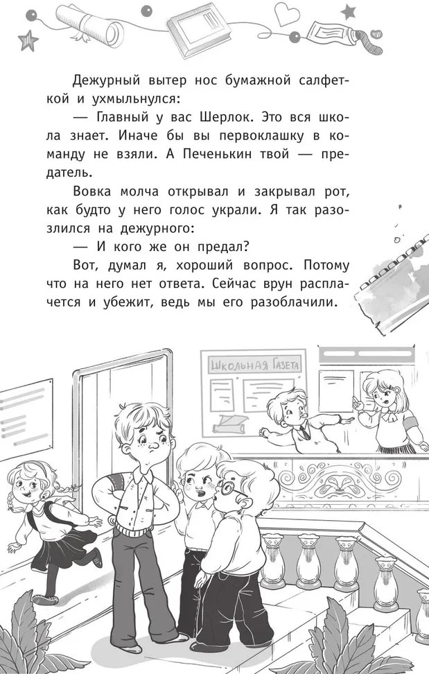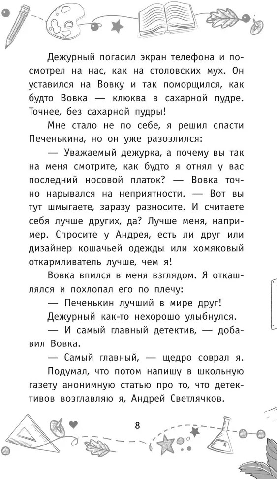 Серия: Школьники-детективы Какие тайны хранит Печенькин и почему вся школа считает его предателем? Кто победит на конкурсе комиксов про весёлых зомби? Как рассекретить невидимку Маякоградова? Выполнит ли Андрей Светлячков миссию «8 Марта» и сможет ли победить свой страх выступлений? Детективам из 4 «А» предстоят сложные дела и неожиданные повороты! |