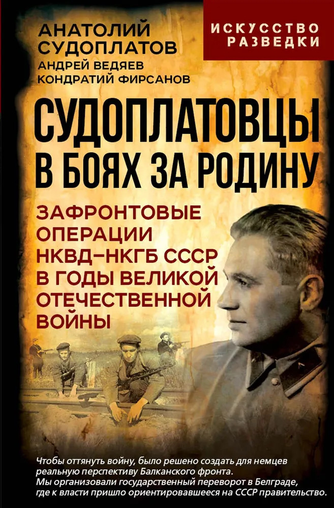 Судоплатовцы в боях за родину. Зафронтовые операции НКВД-НКГБ СССР в годы Великой Отечественной войныАндрей Юрьевич Ведяев, Анатолий Судоплатов, Кондратий Фирсанов В данный момент этот товар отсутствует в продаже. Возможно, у нас найдется аналогичный или похожий товар здесь. Серия: Искусство разведки Советские диверсанты — кто они? Сотрудники Четвертого управления НКВД и бойцы легендарной ОМСБОН — отдельной мотострелковой бригады особого назначения, подчиненные комиссара государственной безопасности Павла Судоплатова внесли ощутимый вклад в Победу над смертельным врагом. В тыл врага было направлено более двух тысяч оперативных групп общей численностью пятнадцать тысяч человек. Двадцать три офицера получили звание Героя Советского Союза, более восьми тысяч человек наградили орденами и медалями. Ими были уничтожены 157 тысяч немецких солдат и офицеров, ликвидированы 87 высокопоставленных немецких чиновников, разоблачены и обезврежены 2045 агентурных групп противника. Эта книга написана ими и о них. |