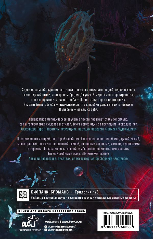 💳 Оплатить за товар можно при получении 🇰🇿 Есть бесплатная доставка по Казахстану от 1 дня 🎁 Копите бонусы с каждой покупки Серия: Фэнтези. Бромансы Здесь из камней выращивают дома, а шлюпки пожирают людей; здесь в лесах живет дикий огонь, а по тропам бродит Джувия. В мире живого пространства, где нет времени, а вместо неба — Полог, одна дорога ведет троих. И может быть, дружба — единственное, что способно удержать их от бездны. И уберечь — от самих себя. |
