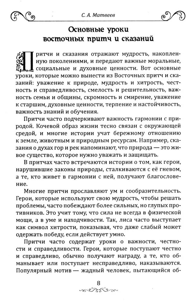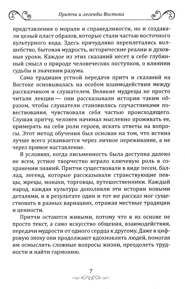 Мудрость Востока передавалась из поколения в поколение в виде притч и сказаний, наполненных глубоким смыслом и философскими истинами. Эти истории, простые на первый взгляд, несут в себе ответы на самые важные вопросы жизни: как найти гармонию, как преодолеть трудности, как обрести счастье и внутренний покой. Сборник «Восточные притчи и сказания» приглашает читателя в удивительный мир древней мудрости. Здесь оживают великие мудрецы, странствующие монахи, цари и хитроумные шуты, каждый из которых несет особую истину, способную изменить взгляд на жизнь. Представленные истории помогают увидеть скрытые законы мироздания, учат внимательности к деталям, проницательности и умению воспринимать уроки судьбы. Они вдохновляют на размышления, пробуждают сердце и напоминают, что подлинное богатство — это не золото и власть, а добродетель, терпение и осознание высшей истины. Эта книга станет верным спутником для тех, кто ищет мудрость, стремится к самопознанию. |