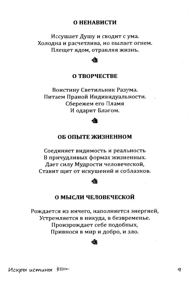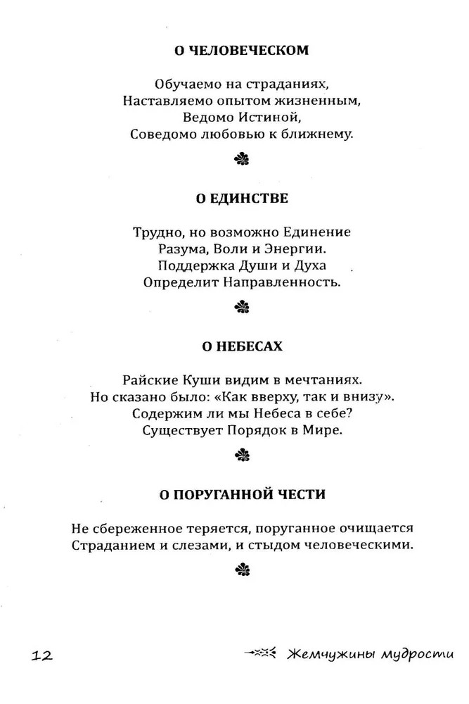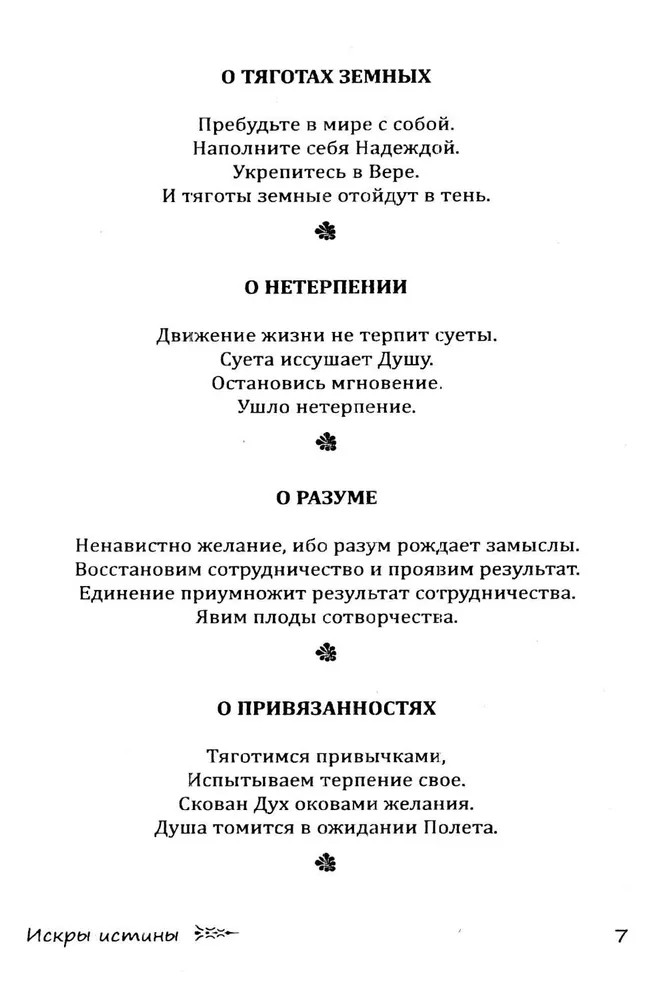 В ваших руках книга-жемчужина. В ней собраны афоризмы, беседы и другие тексты, c помощью которых можно прикоснуться к универсальной вселенской мудрости и развить осознанность. Знания, переданные на этих страницах Учителем Эль Мориа, побуждают каждого читающего задуматься о простом и вечном, но всё ещё не до конца понятом: о гармонии души и духа, о любви и надежде, стойкости, самообладании, о труде и вере и многом другом. Освещая своим светом и вдохновляя силой, жемчужины знаний напоминают человеку о важности духовного развития, без которого невозможно подлинное раскрытие истинного «я». |