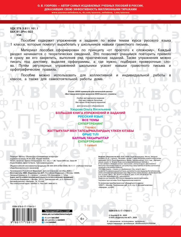 Большая книга упражнений и заданий. Русский язык. Все темы. Супертренинг. 1 класс