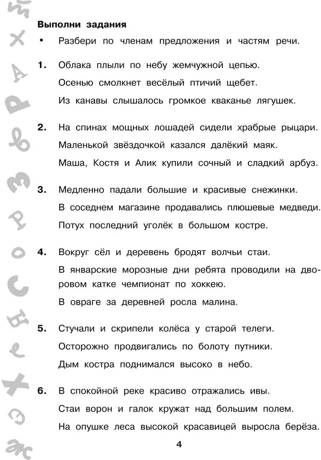 Серия: 3000 примеров для начальной школы Пособие содержит упражнения и задания по всем темам курса русского языка 3 класса, которые помогут выработать у школьников навыки грамотного письма. Материал пособия сформирован по принципу «от простого к сложному». Каждый раздел начинается с теоретических сведений. Это позволяет учащимся повторить правило и сразу же его закрепить, выполнив ряд практических заданий. Также упражнения можно писать под диктовку, выделяя орфограммы, а где нужно, подбирая проверочные слова. Путём регулярных упражнений школьники усвоят навыки грамотного письма и орфографические правила. Пособие можно использовать для коллективной и индивидуальной работы в классе, а также для самостоятельной работы дома. |