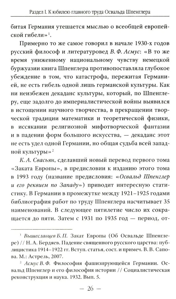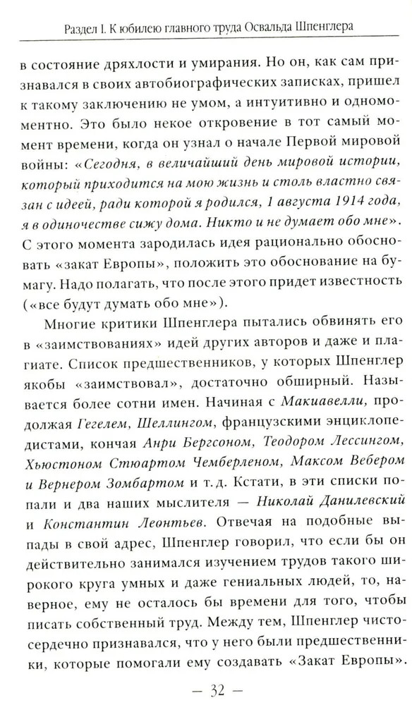 «Закат Запада» — так в дословном переводе звучит название книги О. Шпенглера о периодичности истории, которой уже больше 100 лет. В русской традиции принято переводить это название так: «Закат Европы». Почему же немецкий философ считал, что дни Европы (и даже всего Запада) сочтены? Какие фазы выделял в жизненном цикле любой культуры? Какое место в ряду мировых цивилизаций занимает русская цивилизация? В чем принципиальное отличие культуры от цивилизации? Когда наступит расцвет новой великой культуры — русскосибирской? Как связаны этические взгляды О. Шпенглера и русских философов К. Леонтьева, Н. Бердяева? Сбылись ли предсказания немецкого философа? |