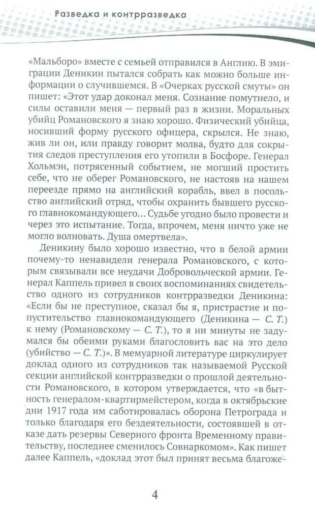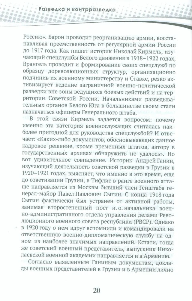 Разведка и контрразведка — вечное противостояние. Эта тема волновала мыслящего человека всегда, а в период мировых потрясений — тем более. О разведчиках литераторы создают книги, режиссеры снимают документальное кино и художественные фильмы, историки исследуют архивы — и всегда открывается какая-нибудь ранее не известная информация. А многое ли известно простому обывателю? Большой объем документов до сих пор засекречен, но постепенно — медленно и неохотно — архивы расстаются со своими тайнами, и мы узнаем удивительные факты о жизни и работе сотрудников служб разведки и контрразведки. |