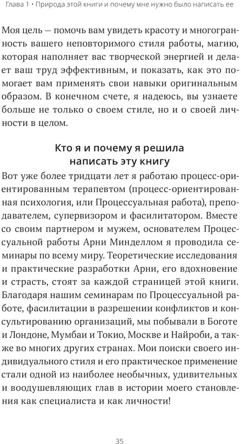 Автор подробно разбирает различные составляющие вашего стиля и показывает, как они перетекают друг в друга, как ваш общий стиль фасилитации связан с вашим личным мифом, с паттернами самых ранних ваших сновидений или воспоминаний, как наиболее эффективно применять свой уникальный стиль в работе и жизни. Многочисленные упражнения помогут изучить, как ваш стиль работает на практике. Книга будет полезна психологам, фасилитаторам, коучам, социальным работникам, духовным наставникам, медикам, учителям, бизнес-консультантам и всем, кто связан с помогающими профессиями. Основные принципы и методики, собранные здесь, можно применять как в публичных выступлениях, так и в работе, связанной с административным руководством, юриспруденцией и так далее.