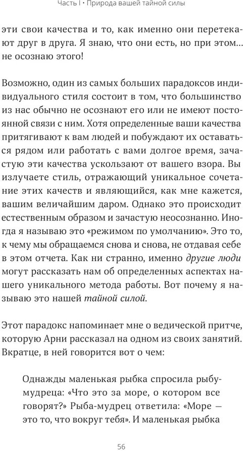 Книга о том, как обнаружить источник своей особенной силы и эффективно к нему подключаться. Здесь описаны красота вашего уникального стиля и то, как ваши необычные, странные, «искривленные» черты отражают ключевые аспекты вашего неповторимого метода работы. Описан и процесс обучения фасилитатора, даны ключи к вашему уникальному стилю.