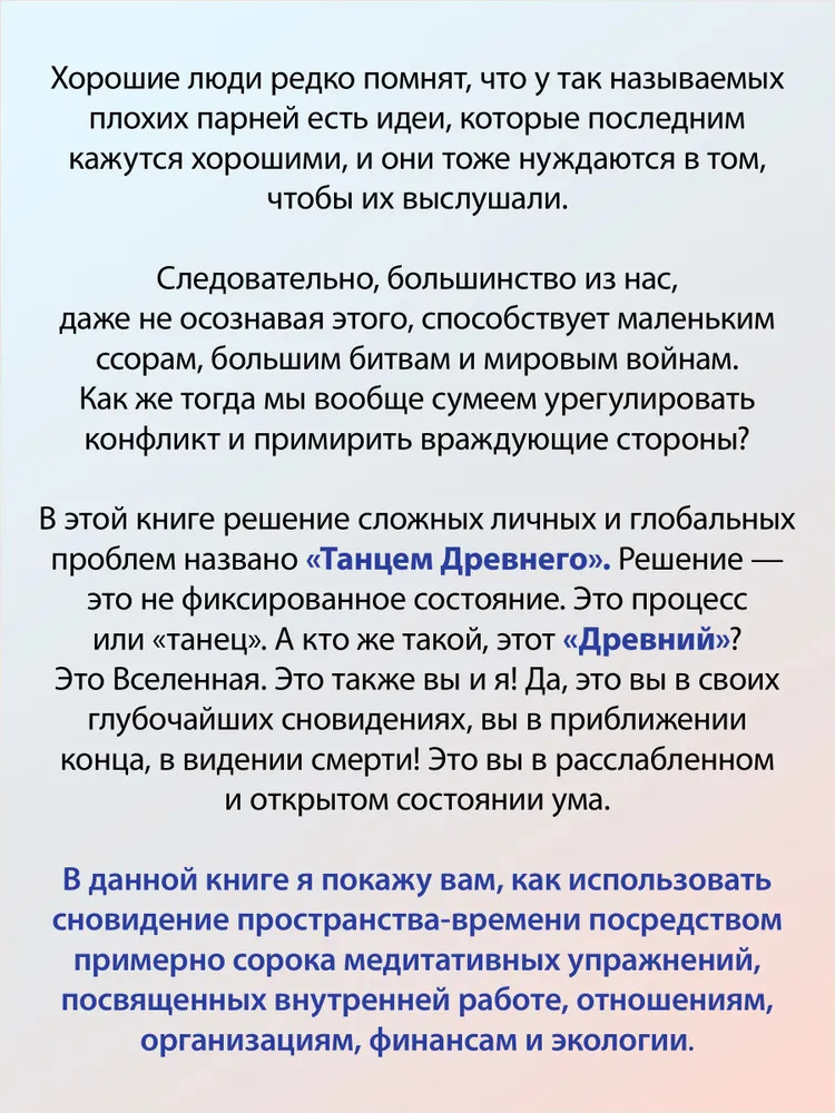 Серия: Трансперсональная психология Новая книга Арнольда Минделла, основоположника процессуально-ориентированной психологии, представляет революционный метод работы с проблемами и трудностями на личностном и общественном уровне. Уникальное соединение психологии и физики, в сочетании с неоценимым опытом работы автора в частной практике, в деловых и правительственных организациях, позволило д-ру Минделлу создать Танец Древнего — авторскую методику осознанного изменения пространства и использования Вселенной для решения задач современного мира. |