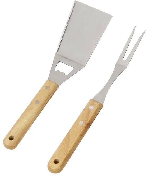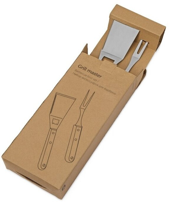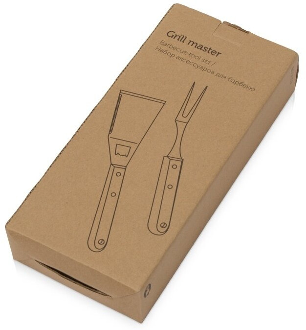 Набор аксессуаров для барбекю «Grill Master» с деревянными ручками состоит из двух предметов: лопатки и вилки. Лопатка также имеет дополнительную функцию — открывалки для бутылок. Набор поставляется в крафтовой коробке с окошком. |