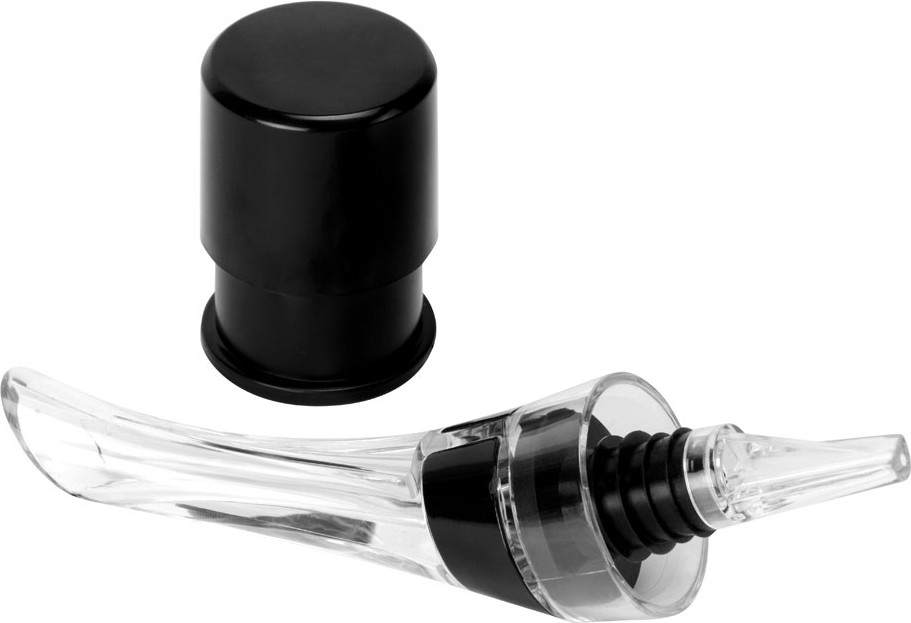 Аэратор надевается на горлышко бутылки, после чего вино разливается по бокалам. Проходя сквозь аэратор, вино насыщается кислородом, что улучшает его вкус, а еще с этим приспособлением вам будет гораздо легче аккуратно разлить вино из бутылки, не пролив и капельки. Силиконовое кольцо обеспечивает плотную и надежную посадку на горлышке, а насыщение воздухом происходит через два отверстия на корпусе. Прозрачное акриловое стекло делает разлив вина еще и красивым, позволяя наблюдать за потоком благородного напитка. Пробка пригодится в тех случаях, когда бутылка еще полна, а пить уже не хочется. Сохраните вино до 7 дней, закупорив его вакуумной пробкой — для этого просто наденьте на горлышко приспособление и нажмите несколько раз на него. Готово!