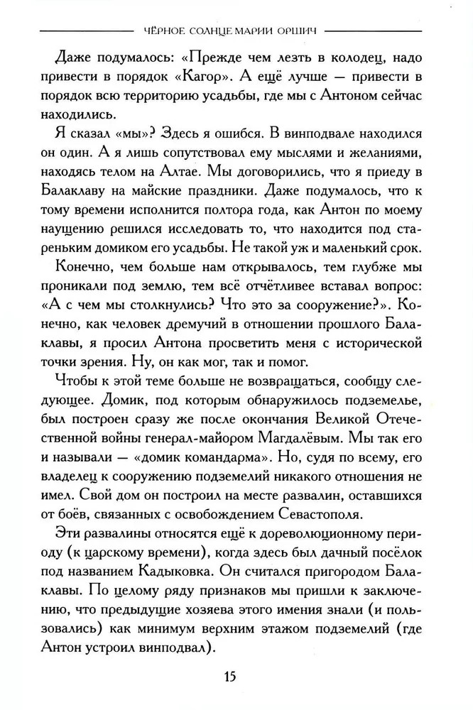 Роман «Чёрное солнце Марии Оршич» продолжает исследования автором деятельности в Крыму немецкой организации времён Второй мировой войны «Аненербе», которое было начато в серии книг «Загадки империи». Также данный роман тесно связан с исторической серией «Тайны русского Крыма», являясь её естественным продолжением. |