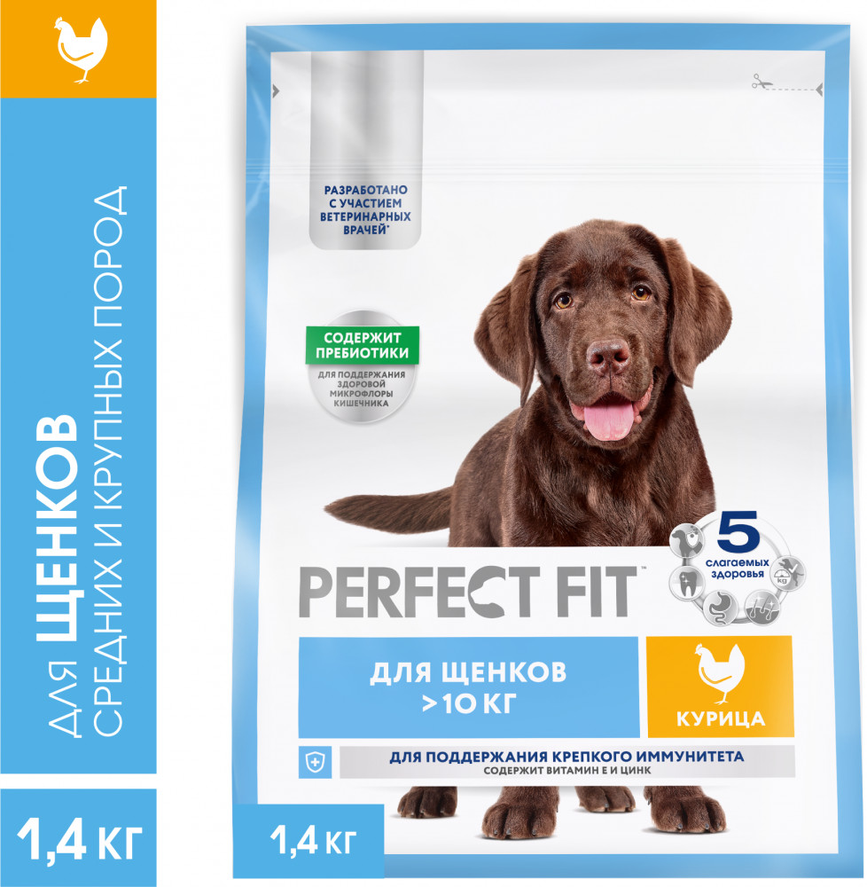 Perfect Fit Корм для щенков средних и крупных пород для поддержания крепкого иммунитета «Курица»