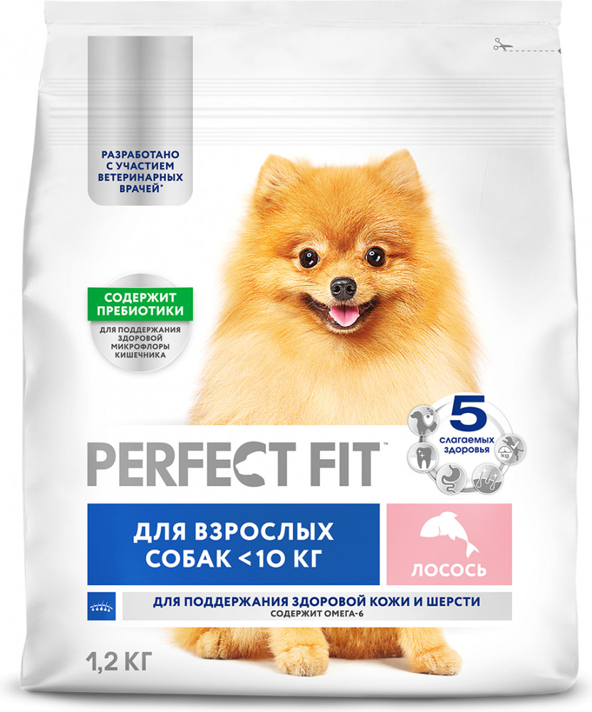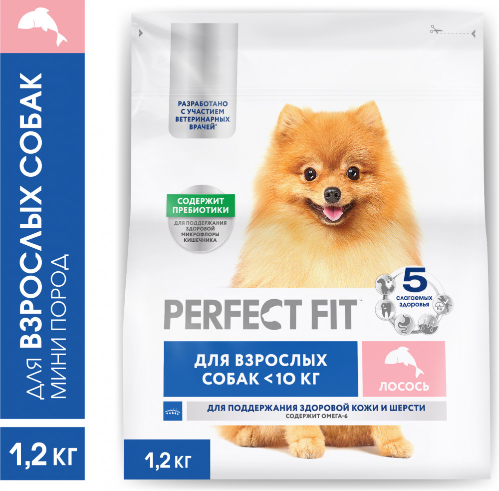 Perfect Fit Корм для взрослых собак мелких и миниатюрных пород для поддержания здоровой кожи и шерсти «Лосось»