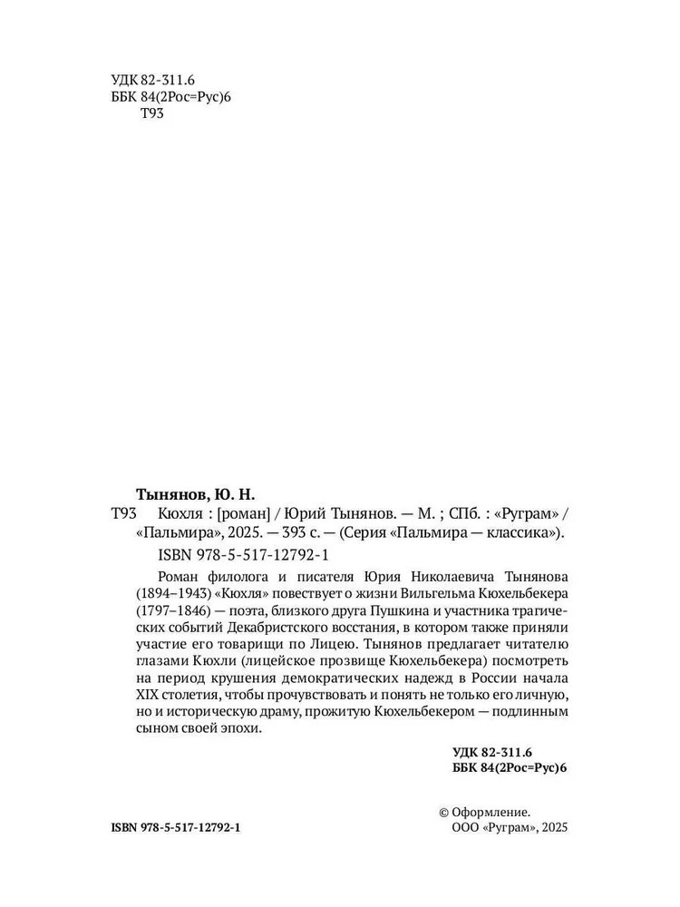 💳 Оплатить за товар можно при получении 🇰🇿 Есть бесплатная доставка по Казахстану от 1 дня 🎁 Копите бонусы с каждой покупки Серия: Пальмира — Классика Роман филолога и писателя Юрия Николаевича Тынянова (1894-1943) «Кюхля» повествует о жизни Вильгельма Кюхельбекера (1797-1846) — поэта, близкого друга Пушкина и участника трагических событий Декабристского восстания, в котором также приняли участие его товарищи по Лицею. Тынянов предлагает читателю глазами Кюхли (лицейское прозвище Кюхельбекера) посмотреть на период крушения демократических надежд в России начала XIX столетия, чтобы прочувствовать и понять не только его личную, но и историческую драму, прожитую Кюхельбекером — подлинным сыном своей эпохи. |