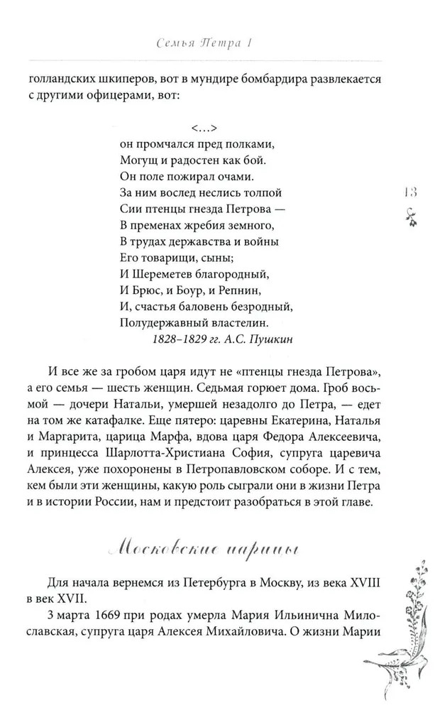 Жизнь женщин XVIII века была трудной, противоречивой и волнующей. Кто может рассказать о времени и о себе лучше, чем очевидцы — люди, жившие в ту эпоху. Поэтому в книге вы встретите множество цитат из мемуаров и литературных произведений XVIII века. Мемуаристы порой противоречат друг другу, по-разному смотрят на одних и тех же людей, на одни и те же события и не всегда точны в описании фактов. Но именно это делает их тексты живыми свидетельствами эпохи, со всеми ее тайнами, противоречиями, умолчаниями, а порой и фальсификациями и откровенной ложью. Конечно, эту тему не исчерпаешь одной книгой. И день, когда количество трудов, посвященных истории женщин, сравнится с количеством трудов, описывающих историю мужчин, еще очень далек. И все же, прочитав эту книгу до конца, вы будете знать немного больше о том, что это значило: быть женщиной в Петербурге XVIII века. |