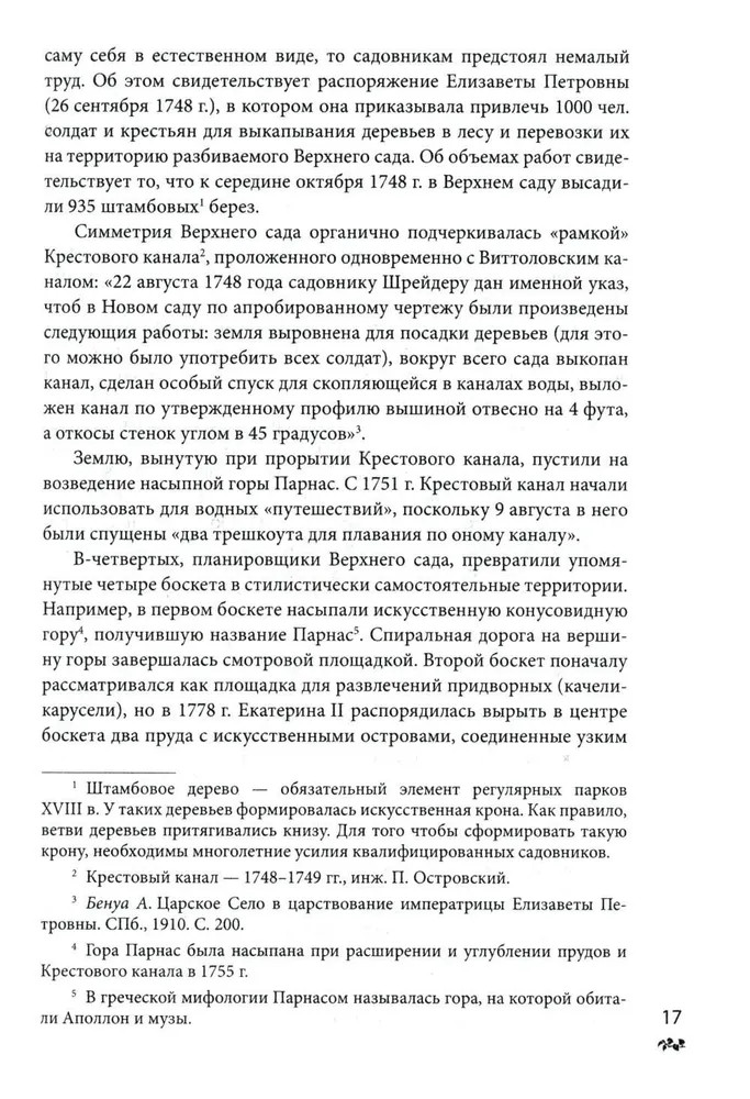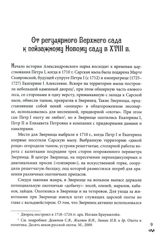 Эта книга является логическим продолжением опубликованной ранее работы И. В. Зимина «Александровский дворец в Царском Селе». Обращение к истории Александровского парка с его многочисленными сооружениями и павильонами обусловлено тем, что парк и дворец составляют единое пространство загородной императорской резиденции и изучать историю одного вне истории другого неправомерно. История Александровского парка имеет более глубокие корни в прошлом, нежели история Александровского дворца. Все императоры и императрицы, с начала XVIII в. жившие в Царском Селе, с любовью и усердием обустраивали свои резиденции и парки. В результате на территории Александровского парка возник причудливый сплав архитектурных фантазий и предпочтений, в которых проявился не только талант архитекторов, но и отблеск личных увлечений российских монархов... |