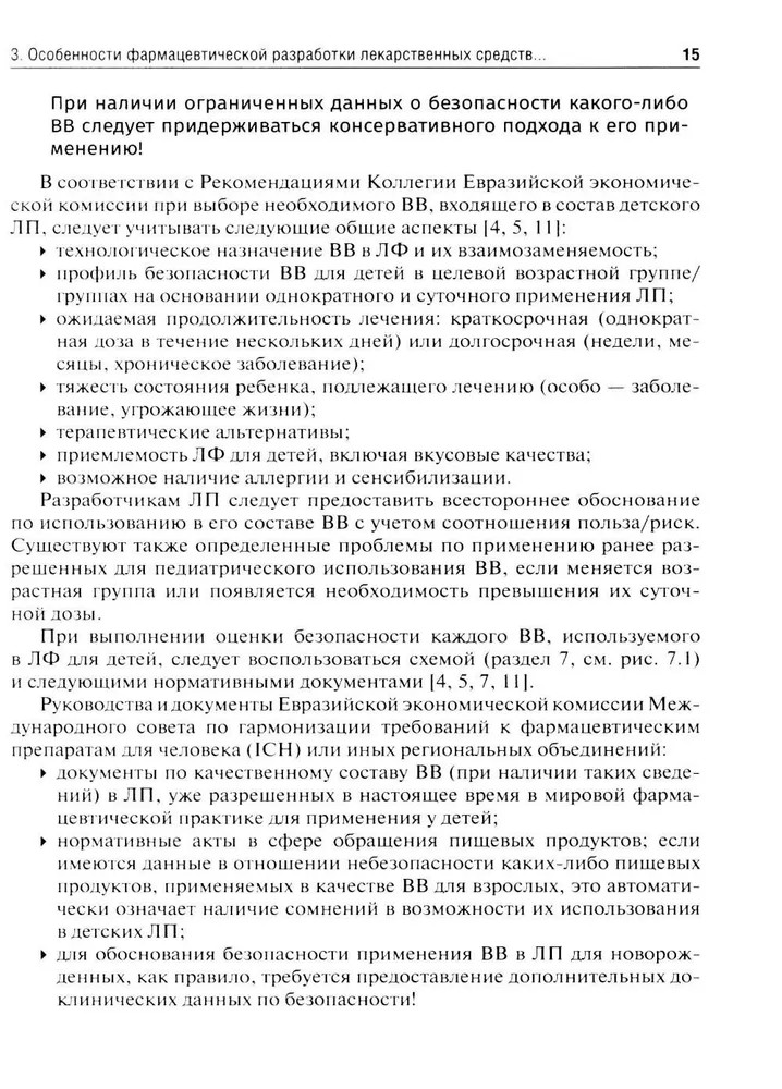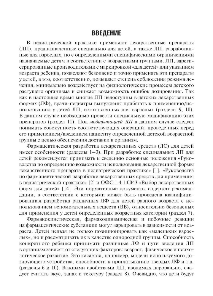 В книге проанализированы современные требования нормативной документации Коллегии Евразийской экономической комиссии и Государственной фармакопеи Российской Федерации XV издания, посвященные общим подходам и специфическим требованиям к фармацевтической разработке лекарственных средств для применения в педиатрической практике. Рассмотрены вопросы по обеспечению безопасности применения вспомогательных веществ, входящих в состав лекарственных препаратов для детей, а также варианты модификации по использованию лекарственных форм, применяемых у взрослых, с целью облегчения введения в детский организм. Отдельный раздел посвящен системам упаковки и мерным устройствам для доставки и введения лекарственных препаратов детям. Пособие может быть использовано при обучении ординаторов, магистрантов, бакалавров, студентов фармацевтических факультетов, аспирантов, а также будет полезно профессионалам химико-фармацевтической промышленности, занимающимся различными аспектами педиатрической фармации. |