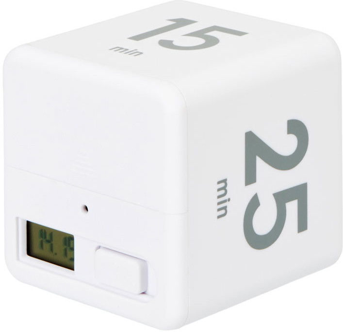 Ваш идеальный помощник дома и на работе — цифровой таймер в виде кубика. На сторонах куба напечатаны четыре предустановленных времени обратного отсчета (5, 15, 25 и 45 минут). Просто включите таймер и поверните его нужной цифрой наверх для начала отсчета времени. Когда время закончится, раздастся звуковой сигнал. Данный таймер имеет огромное количество возможностей для применения — незаменим для офисного таймменджмента, домашней работы, занятий спортом и т.д. Благодаря покрытию софт-тач кубик очень приятный на ощупь. |